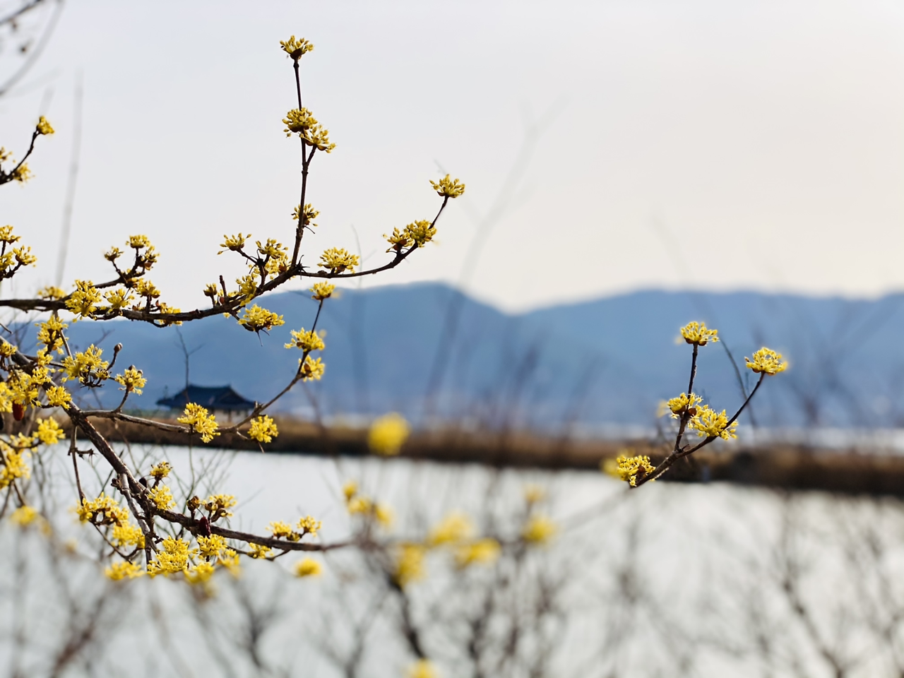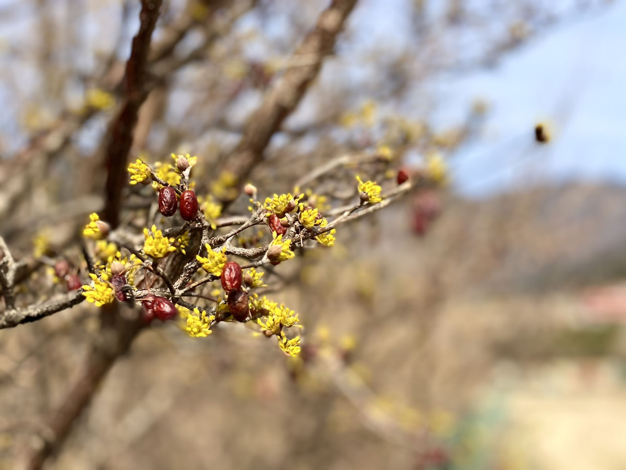 내려오다가 다시 차를 세운다. 진짜 예쁘게 핀 산수유 발견이다.