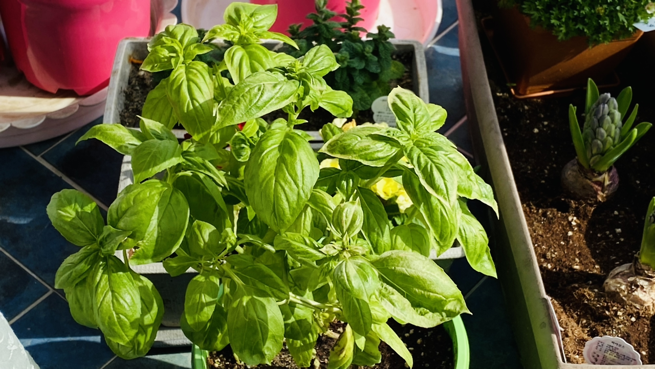 "애들아~ 여기 바질 좀 봐. 이거 진짜 싱싱하다. 나는 바질 죽였는데...... 부럽다. 바질은 추위에는 완전 별로야. 애플민트는 다음 해 싹이 또 나는 거 같던데."