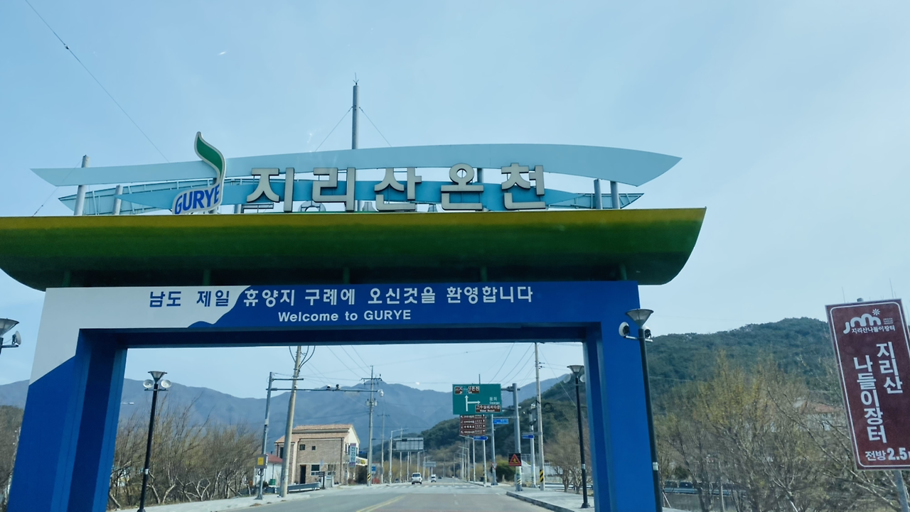 "구례 읍에 가면 산도 하나 있는데 밥 먹고 올라갈까? 전망이 좋아. 노고단이 멀리 보여."