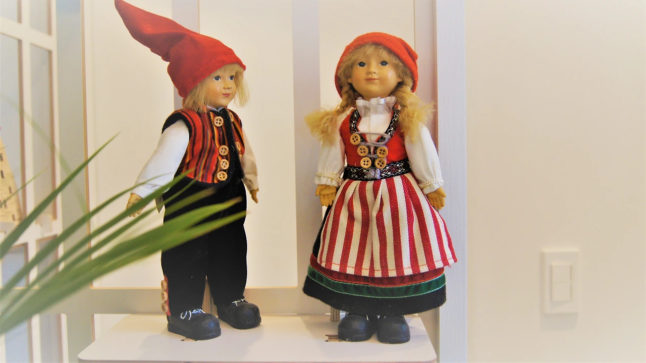 알프스 아이들과 비슷한 인형들에게 인사한다.