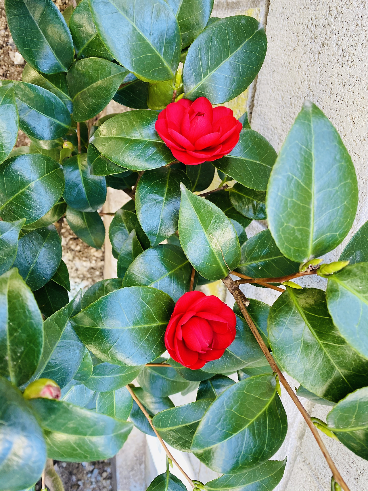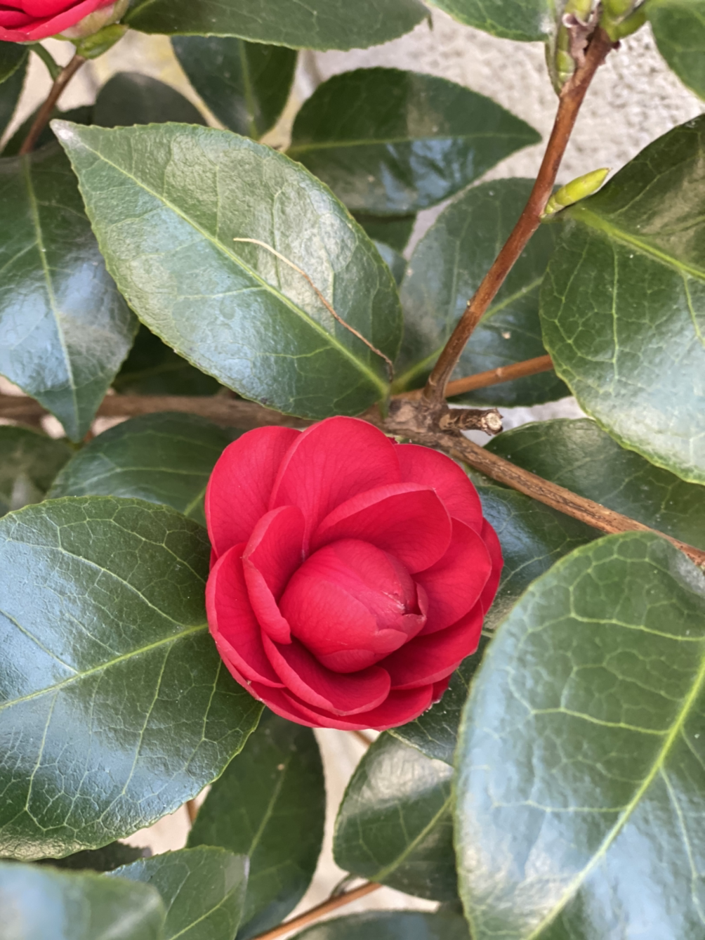 내가 키운 동백, 처음엔 겹동백인 꽃동백이 예뻐 보였다. 장미 같은 느낌이다. 이제는 위의 재래종 홑 동백이 더 마음에 든다.