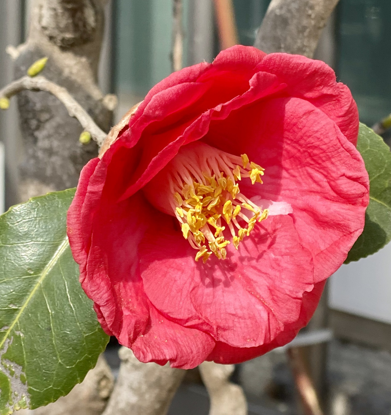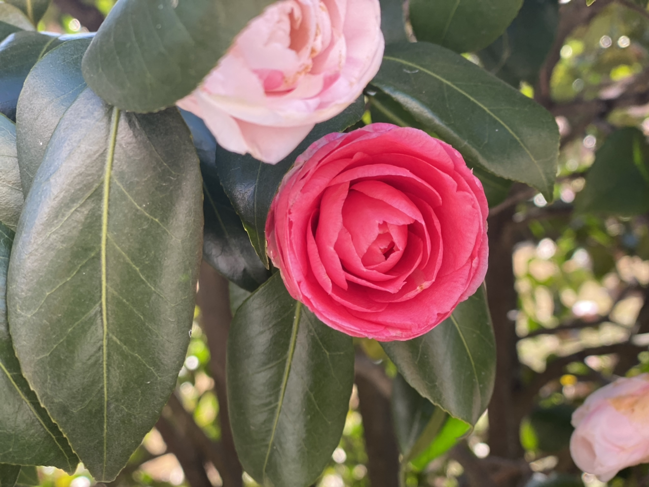 2021 이른 봄, ** 종묘사에서 만난 동백, 온실 속에서 자라서 그런지 화사하지만 곧 부서질 것 같이 여린 아가씨의 모습이다.
