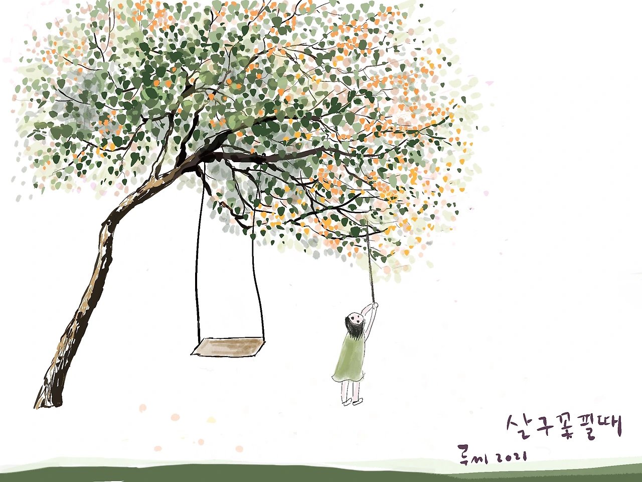 여느 집이나 마당에 살구나무 하나쯤은 있었다. 꽃도 예쁘지만 토실한 살구가 주렁주렁 열리기 때문이었다. 우리 집에도 아름드리 살구나무가 있었다. 아빠가 살구나무에 그네를 매달아 주셔서 우리들은 그곳에서 놀았다.