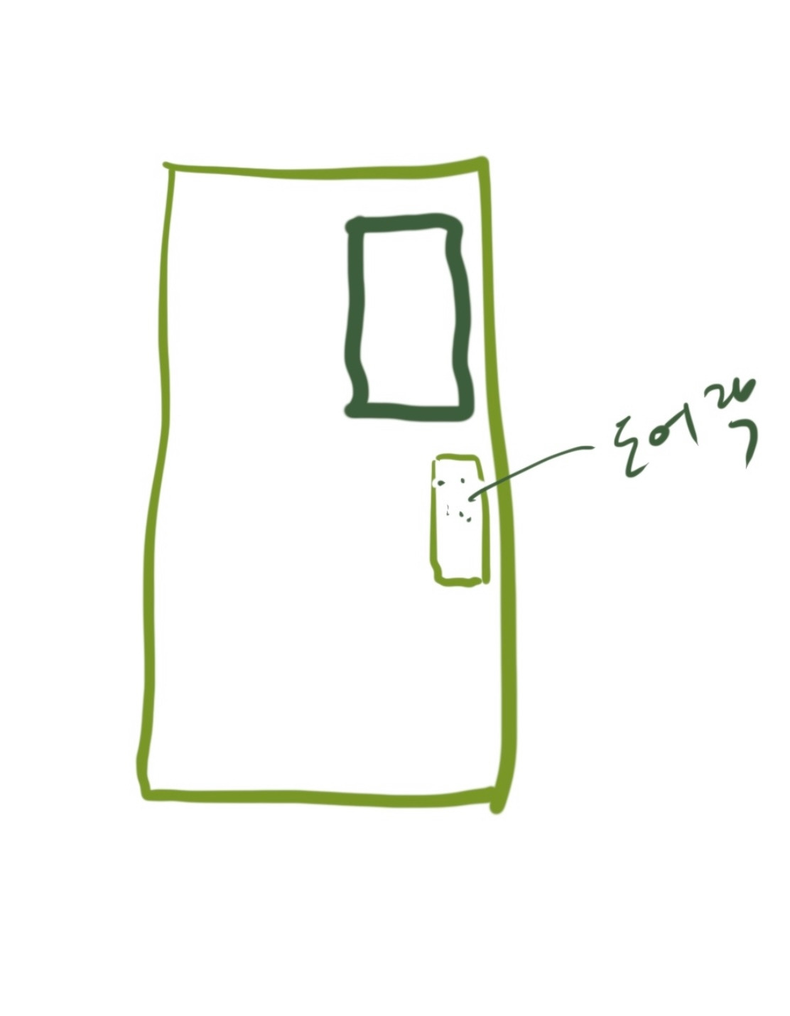 출입문은 나무가 좋을까요? 철문이 좋을까요? 문에 도어록 달아야 하고요. 문의 창문은 세로로 길게 이렇게 내주세요.