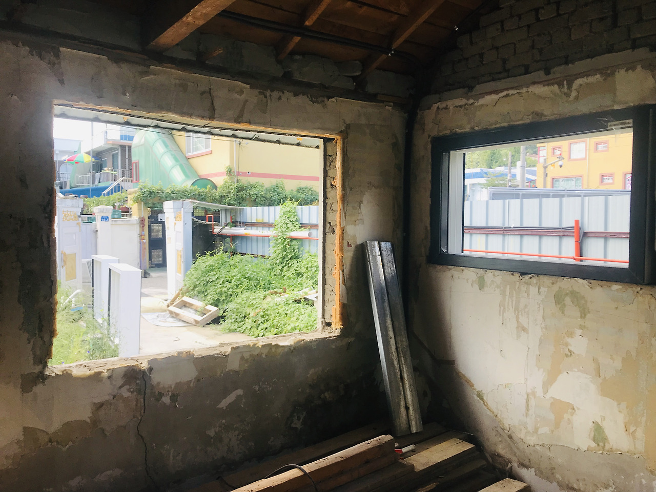 주택을 처음 구입한 후 리모델링을 직접 할 때 창을 낸 모습이다.(왼쪽)