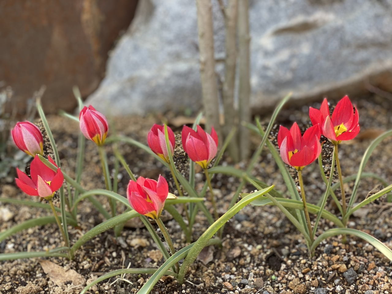 원종 튤립이 아닌 경우는 캐 두었다가 심어야지 그렇지 않으면 몇 년 후 퇴화한다고 한다. 캐지 않아도 되는 원종 튤립들은 난초 같은 형상이다. 꽃이 조금 작지만 우악스럽지 않아 귀엽고 사랑스럽다. 흰색, 분홍, 빨강이 있다.