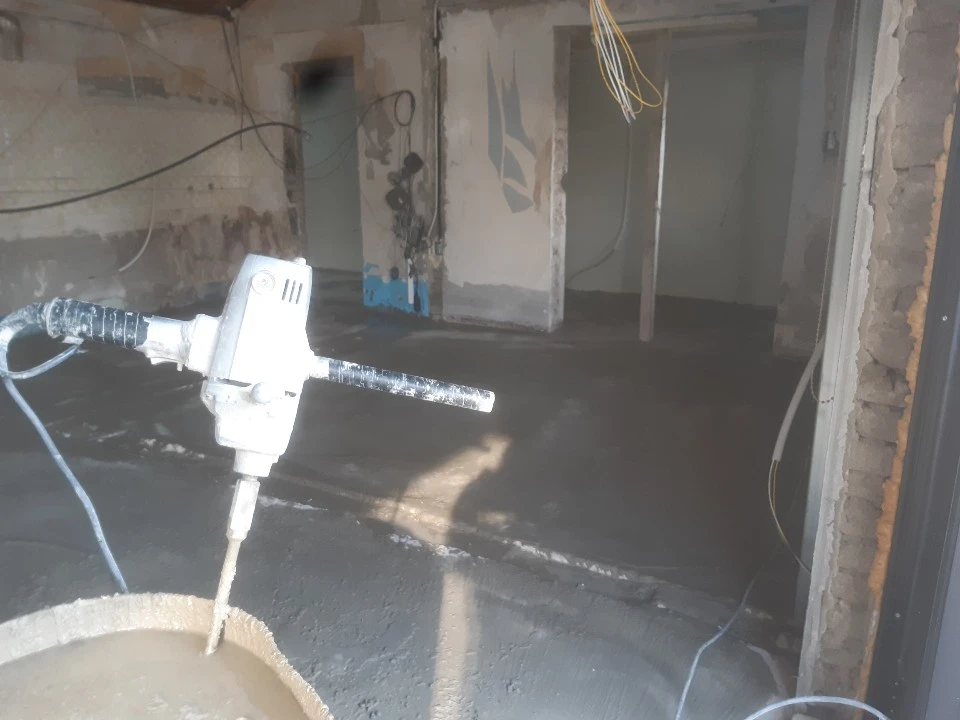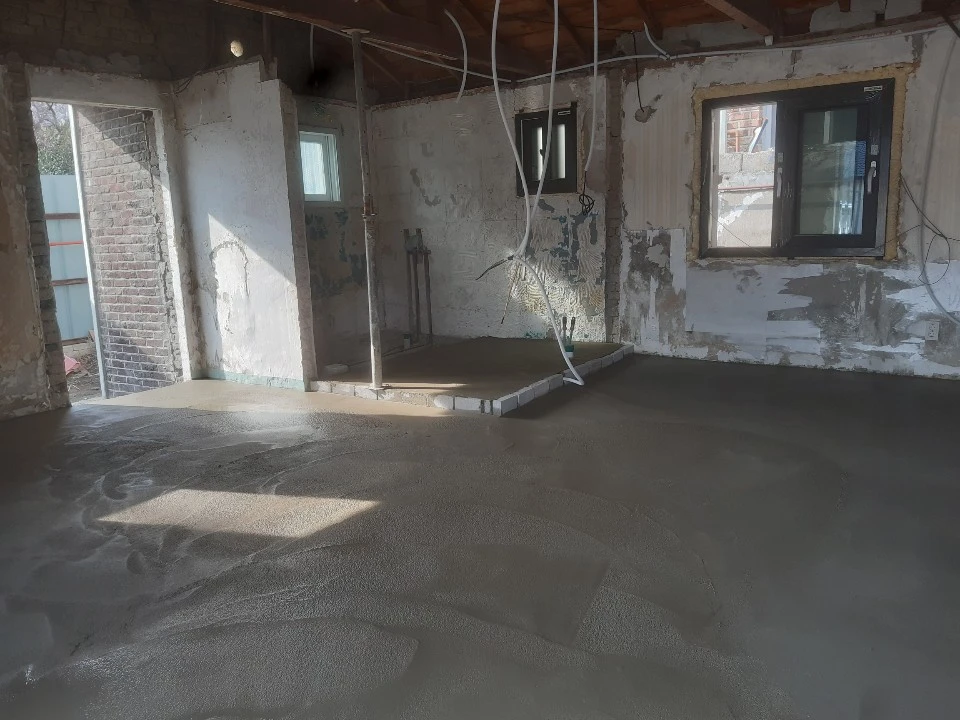화장실 보일러 배관 재 정비 및 바닥 전체의 미장 시공 중이다.