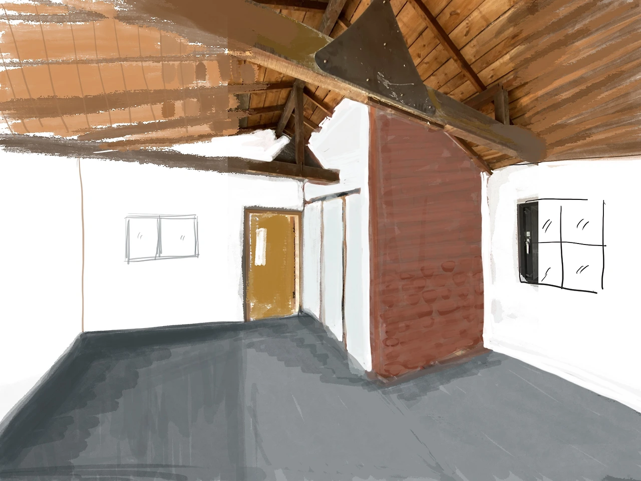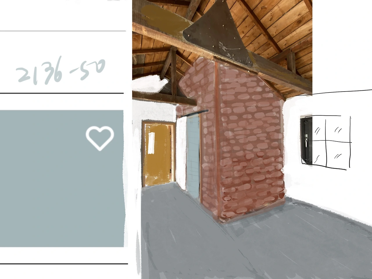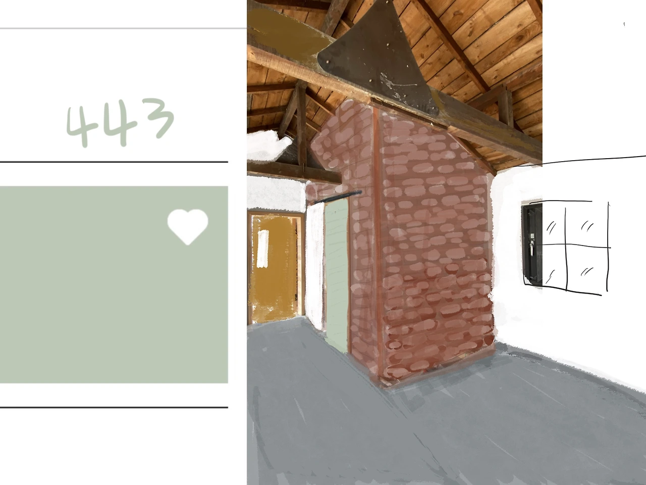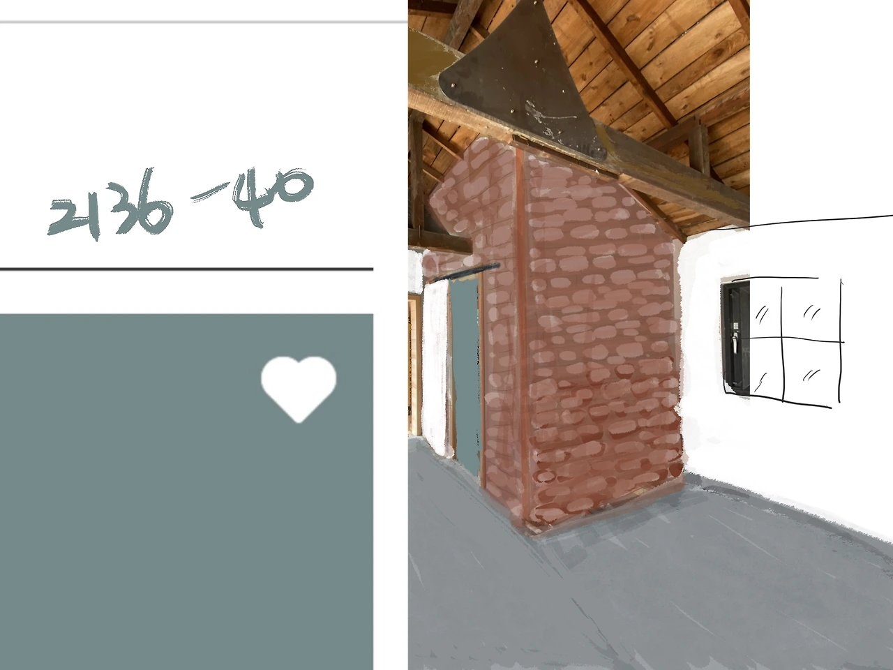 벽면은 위에서 두 번째로 하기로 한다. 파벽돌을 전체를 붙일 것인지, 어느 만큼을 흰색으로 할지 이런 부분은 중요하다. 붙인 후에 떼어내는 것은 시간과 경비 낭비이기 때문이다.