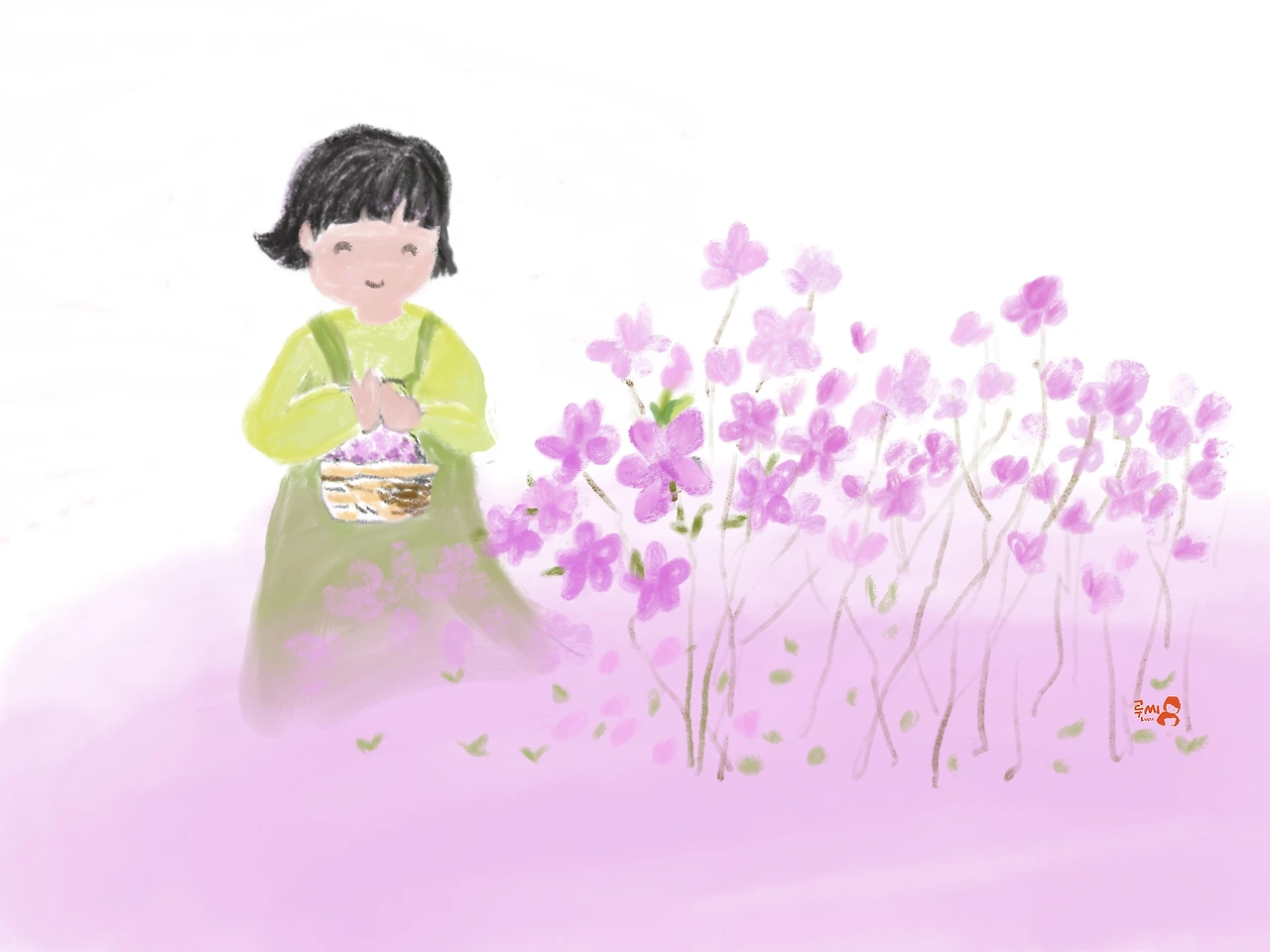진달래의 꽃말은 첫사랑, 사랑의 기쁨이라고 한다. 그런 꽃말을 알리가 없었지만 춘삼월 뒷산에 봄을 알리며 무리 지어 피어나는 연분홍빛 진달래꽃은 우리 모두의 마음을 살랑이게 했다.