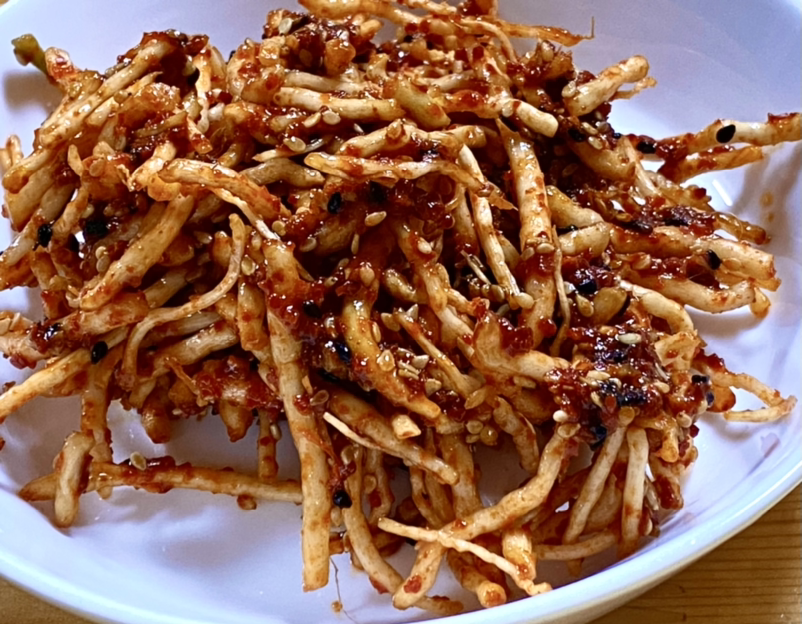"젓갈 종류 넣고, 매실엑기스, 양파엑기스, 고춧가루 넣고 조물조물.