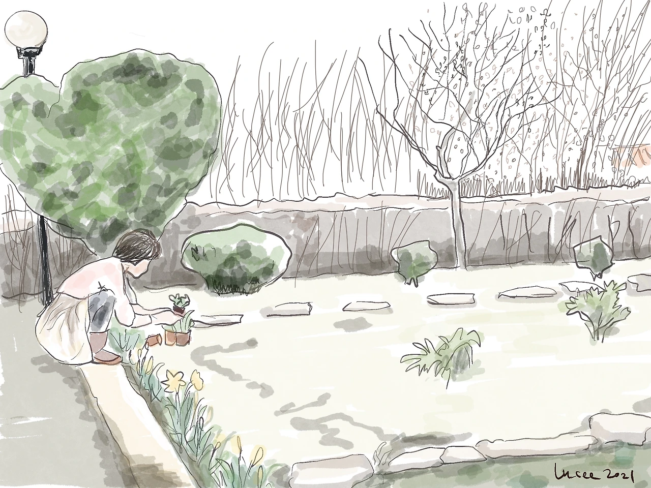 정원 가꾸는데 몸 바쳐서 그래. (나)