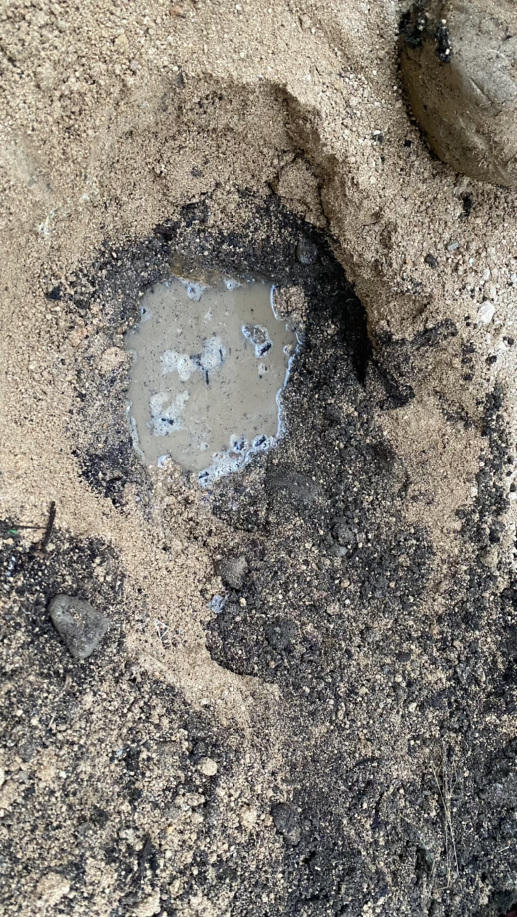 나무를 심기 위해 먼저 구멍을 넓게 파고 물을 반쯤 채운다.