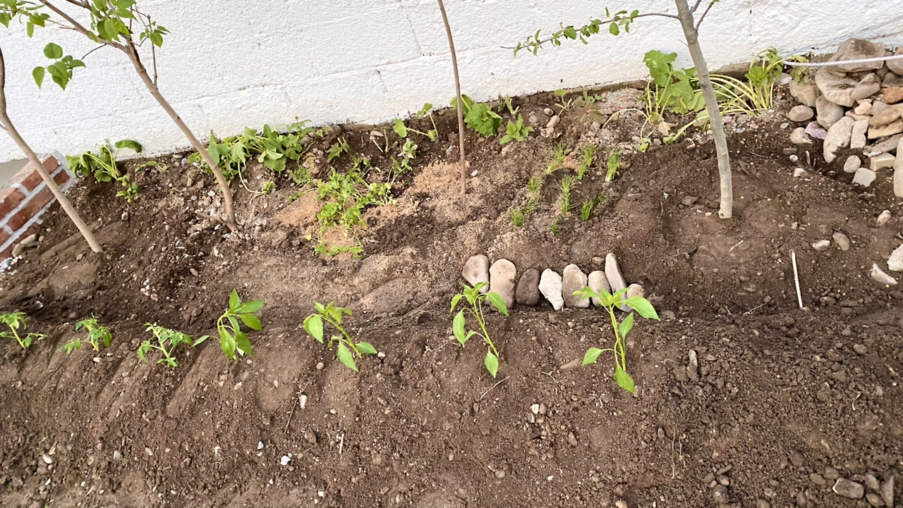 오늘 적기에 남편이 들르지 않았다면 캄캄할 때까지 혼자 했거나 모종은 정말 내일 심었을 것 같다. 밭고랑 1.5미터 만드는 데 무려 한 시간 가까이 소요되었다. 문제는 너무너무 돌자갈이 많다는 것이다. 꼭 시골 농막 주변 돌자갈들 같이 생겼다. 남편이 내일 농막에서 낮은 개비온을 가져다준단다. 그 안에 돌들을 넣으면 딱 맞춤일 듯하다.