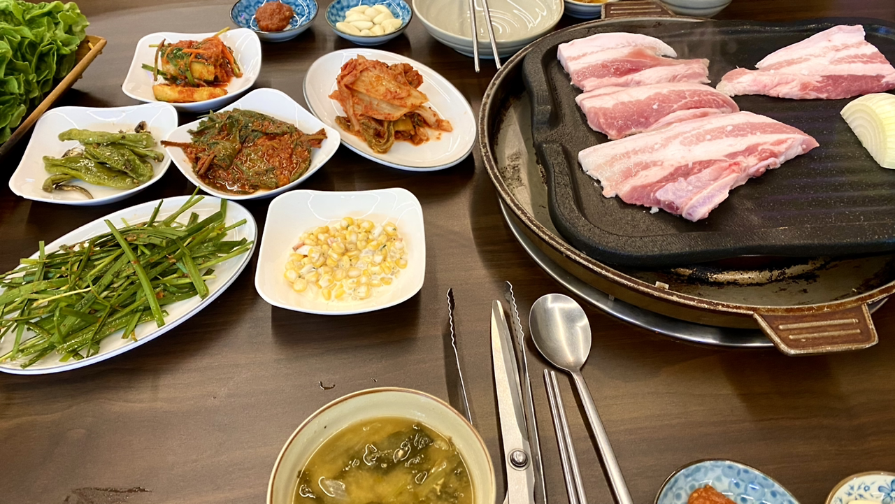 일을 서둘러 마치고 나니 허기가 밀려온다. 가까운 음식점에서 함께 고랑을 내 준 남편과 삼겹살을 먹었다. 아직은 부엌이 완성되지 않았기 때문이다.