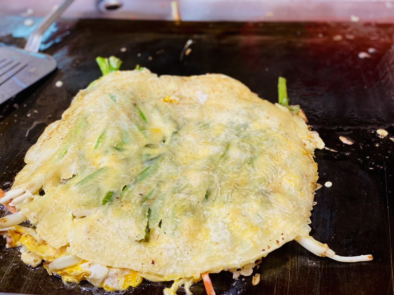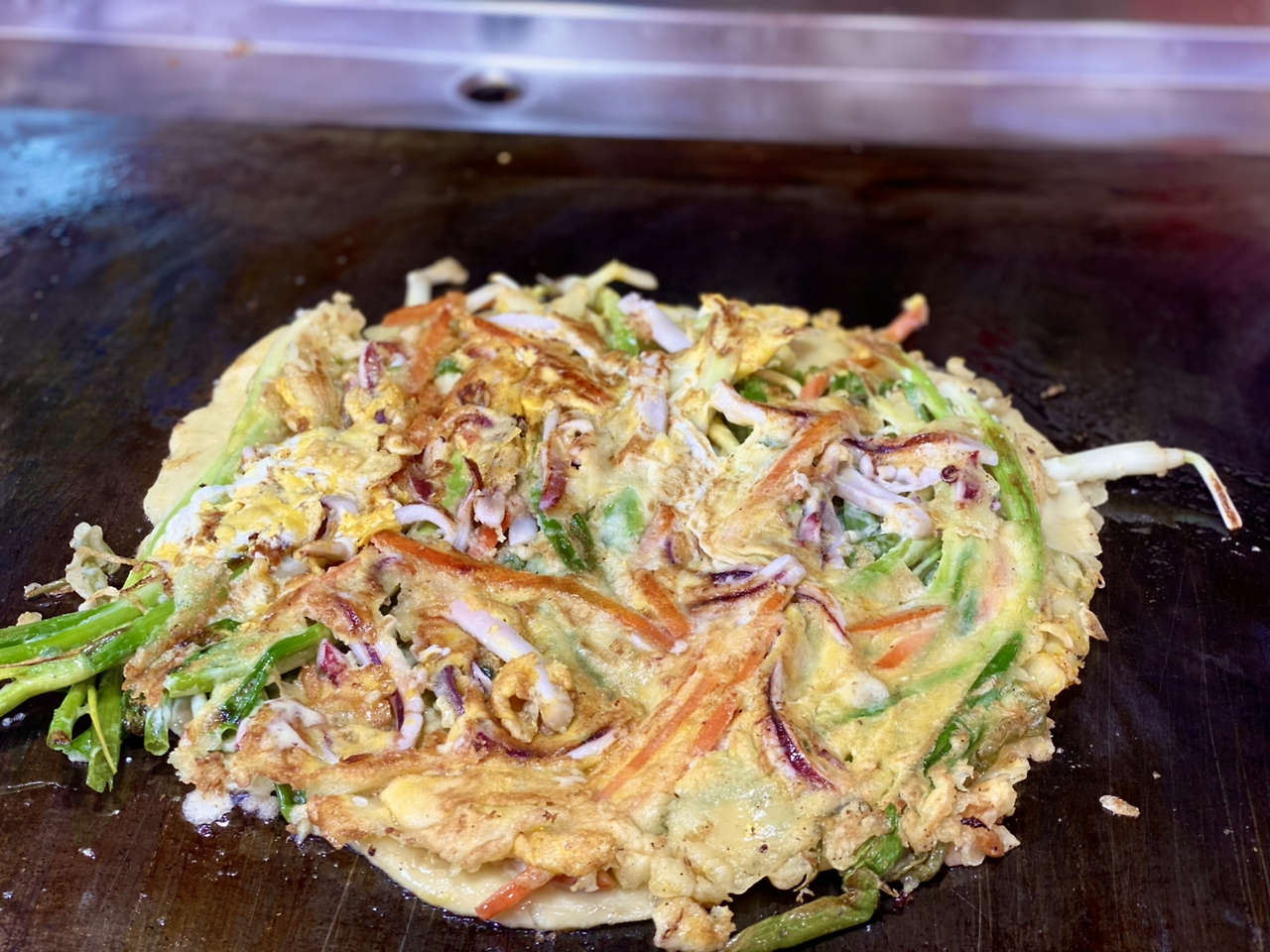 전을 부치는 모습을 보니 오징어가 꽤 많이 들어있다. 아주머님도 상냥하시다.