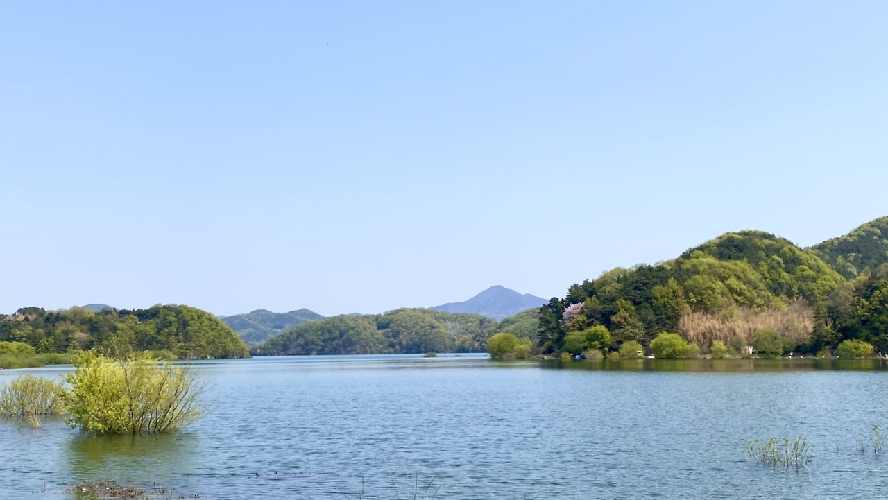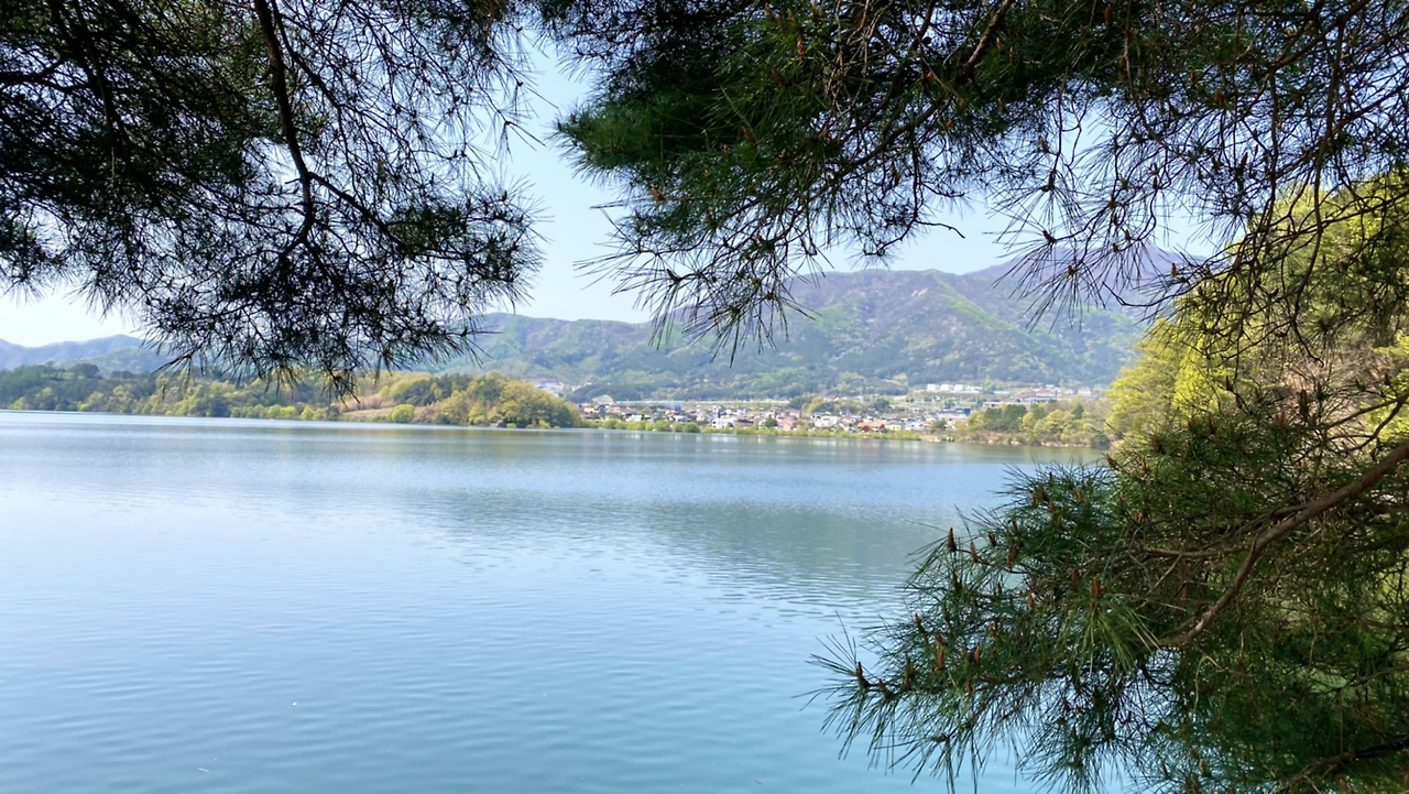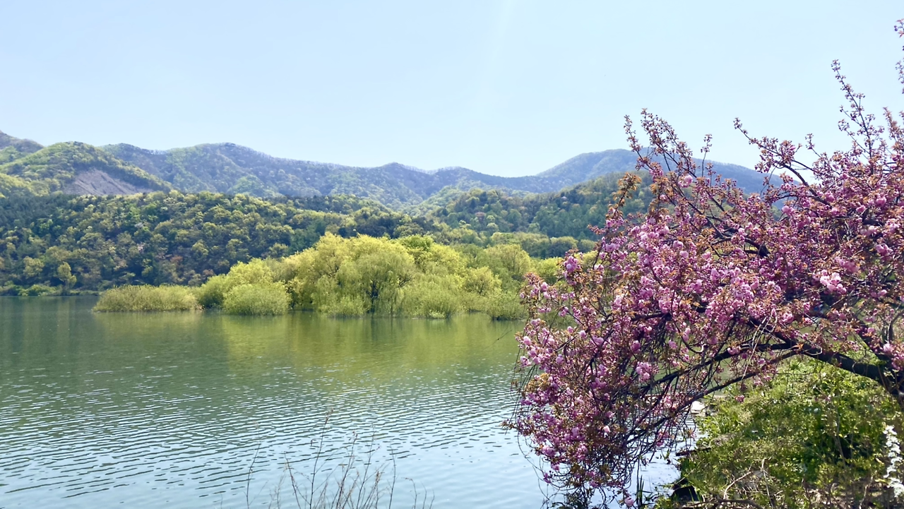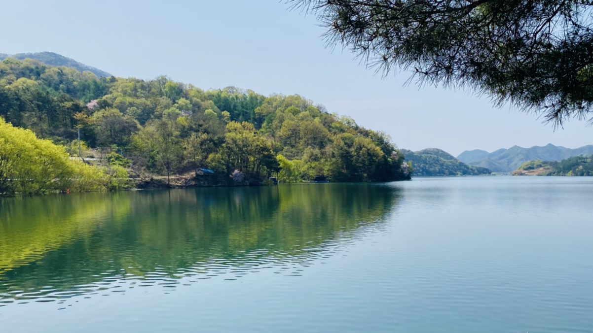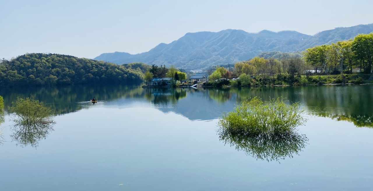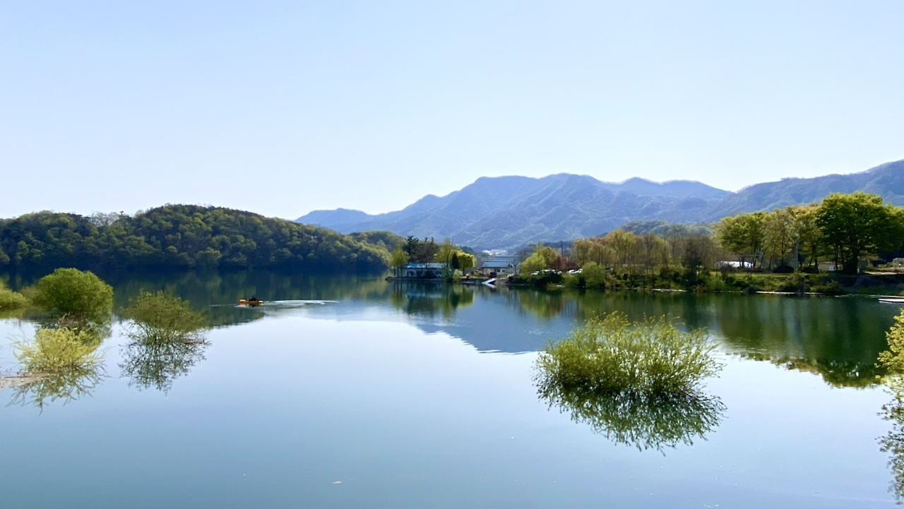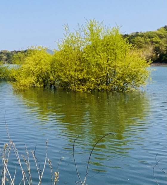 시작은 순조로웠다. 연둣빛 나뭇잎들로 뒤덮인 아름다운 둘레길이다. 호수에 투영된 나무와 강태공이 보였다. 본래 낚시가 허용된 곳은 아니라 들었지만 조용하게 낚싯대를 드리운 풍광은 보기 좋았다. 구이저수지 둘레길은 매거진 <여행하기 좋은 날>에 이미 소개한 바 있다. 호숫가 전체를 돌면 약 3시간~3시간 반 정도가 소요된다.