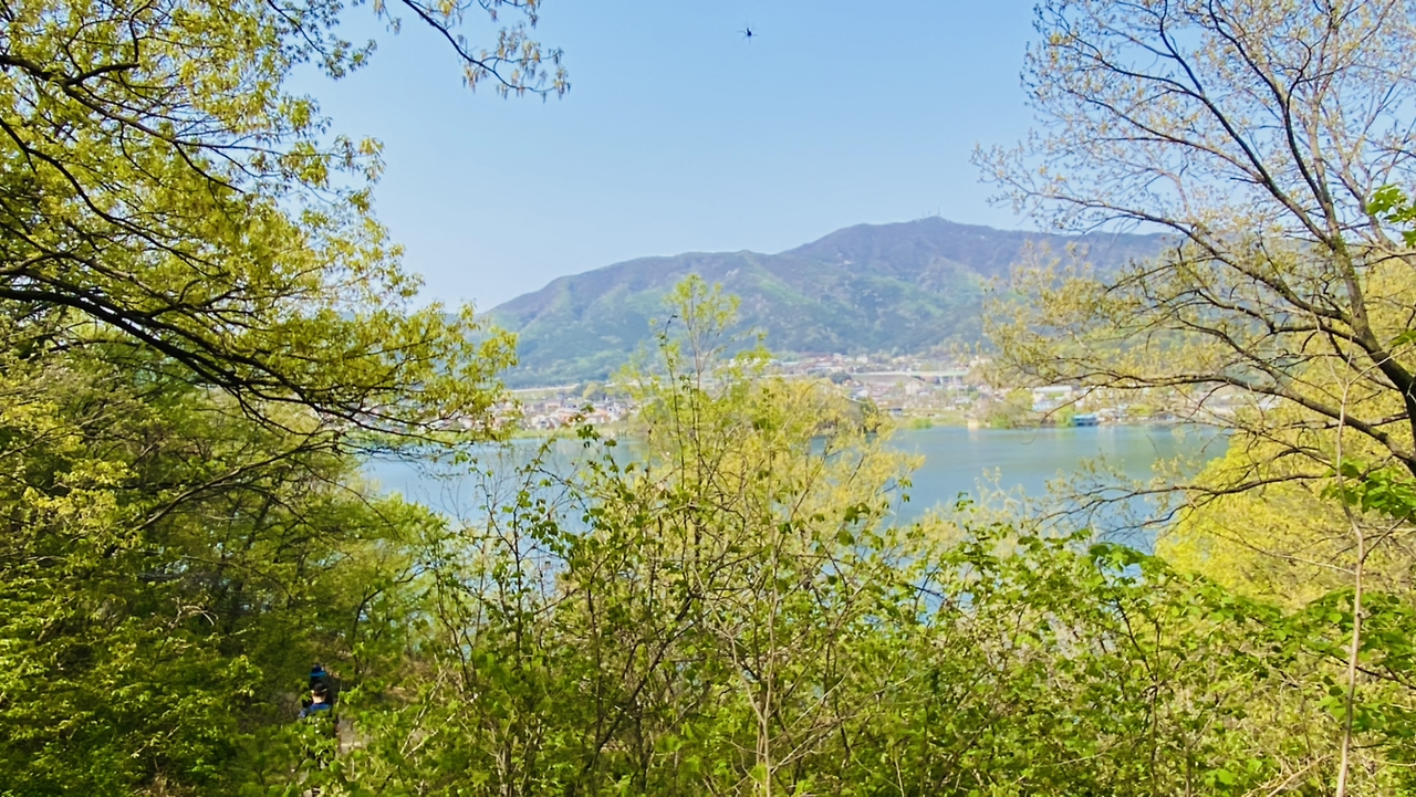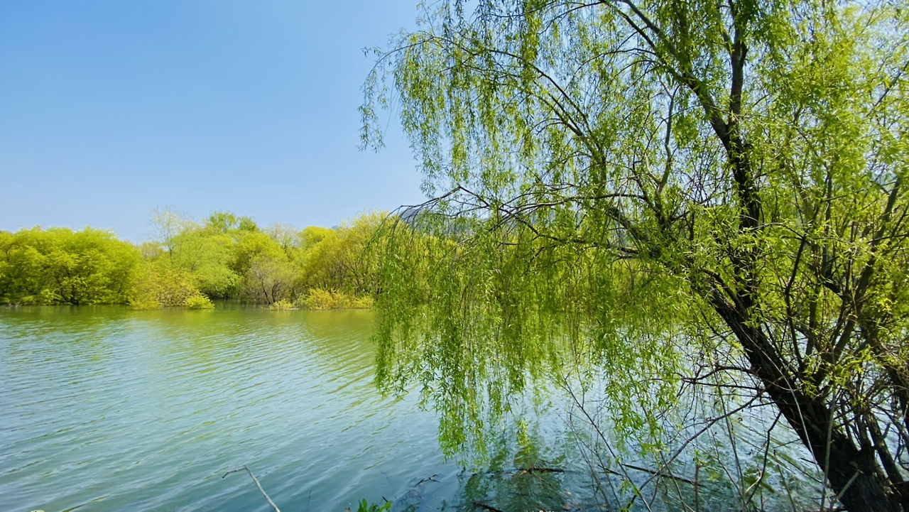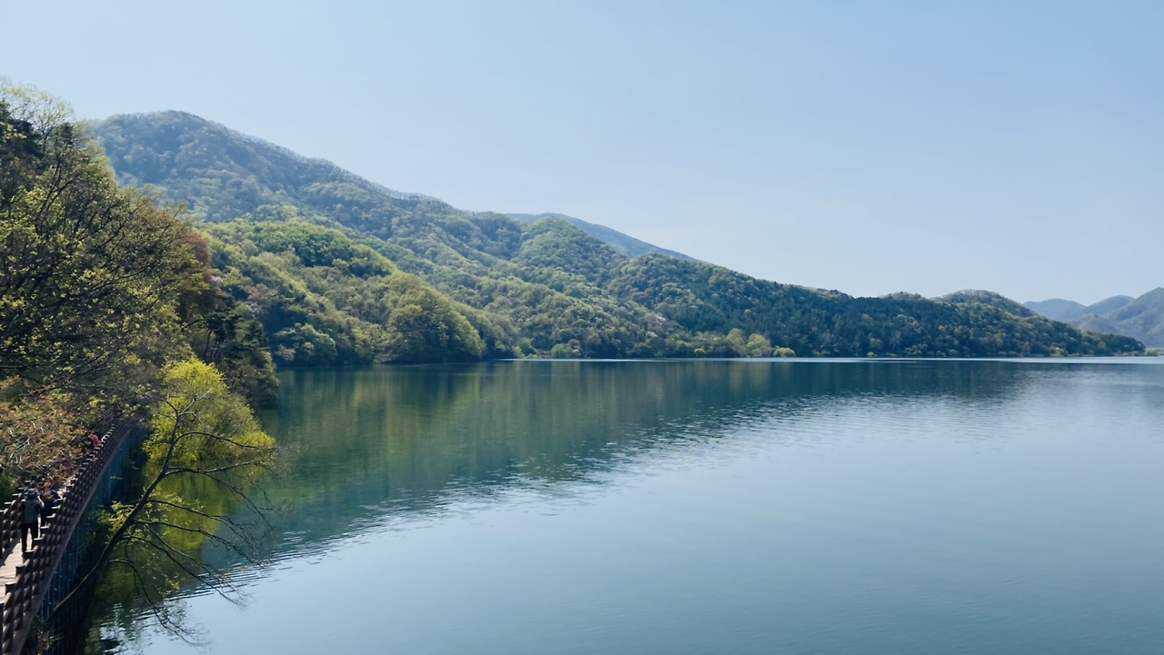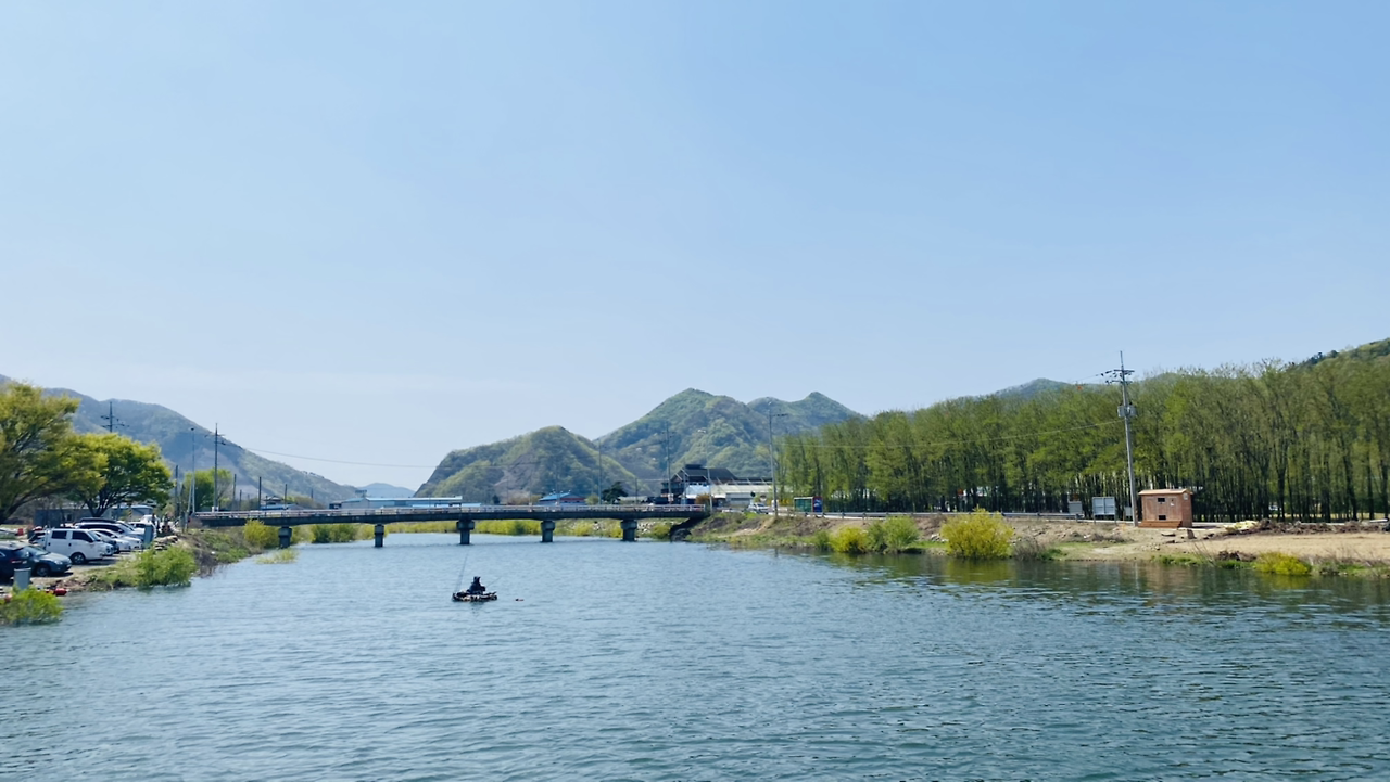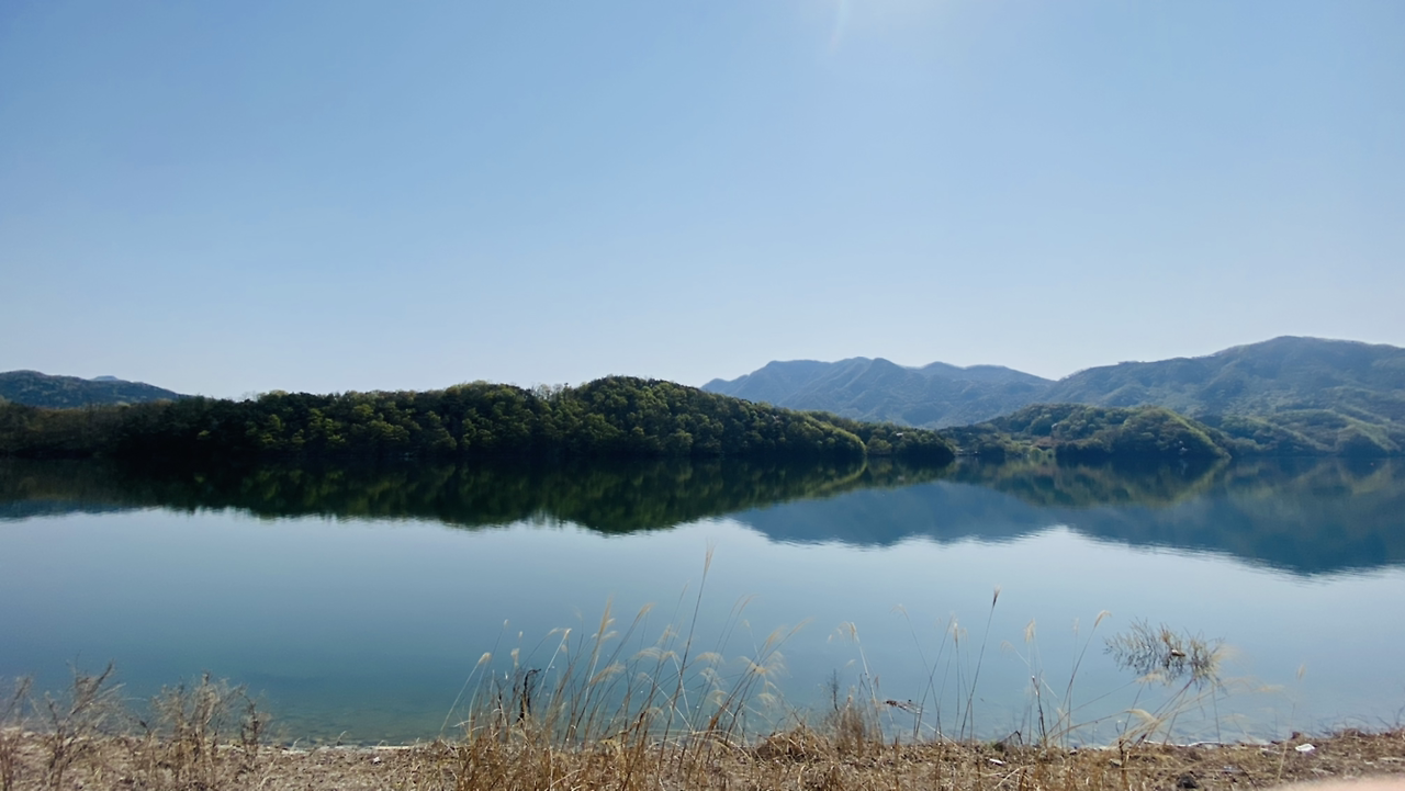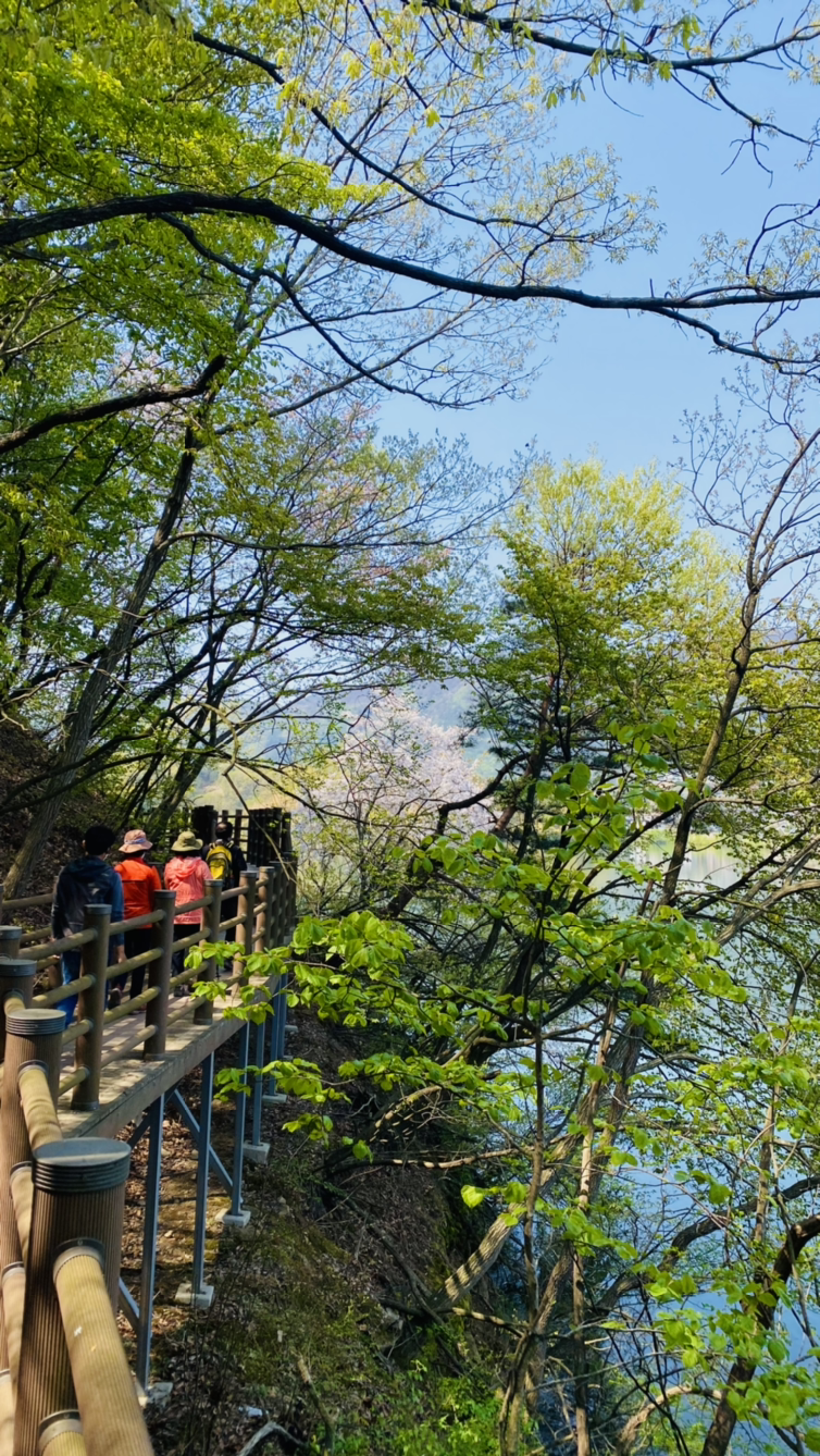 시작은 순조로웠다. 연둣빛 나뭇잎들로 뒤덮인 아름다운 둘레길이다. 호수에 투영된 나무와 강태공이 보였다. 본래 낚시가 허용된 곳은 아니라 들었지만 조용하게 낚싯대를 드리운 풍광은 보기 좋았다. 구이저수지 둘레길은 매거진 <여행하기 좋은 날>에 이미 소개한 바 있다. 호숫가 전체를 돌면 약 3시간~3시간 반 정도가 소요된다.