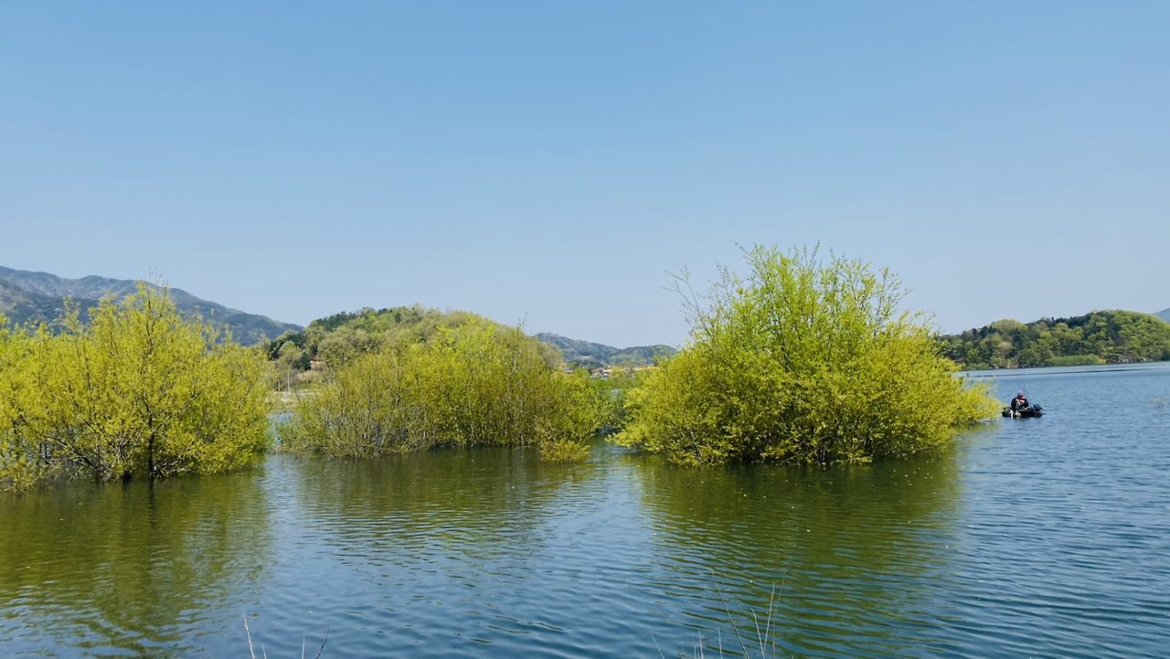 처음에 작게 시작되던 이상한 모터 소리가 점차 굉음으로 저수지를 울렸다. 조용한 호수에 살던 물고기들이 놀라자 빠질 만큼 요란했다. 사진으로 소리가 들리지 않아 다행이다.