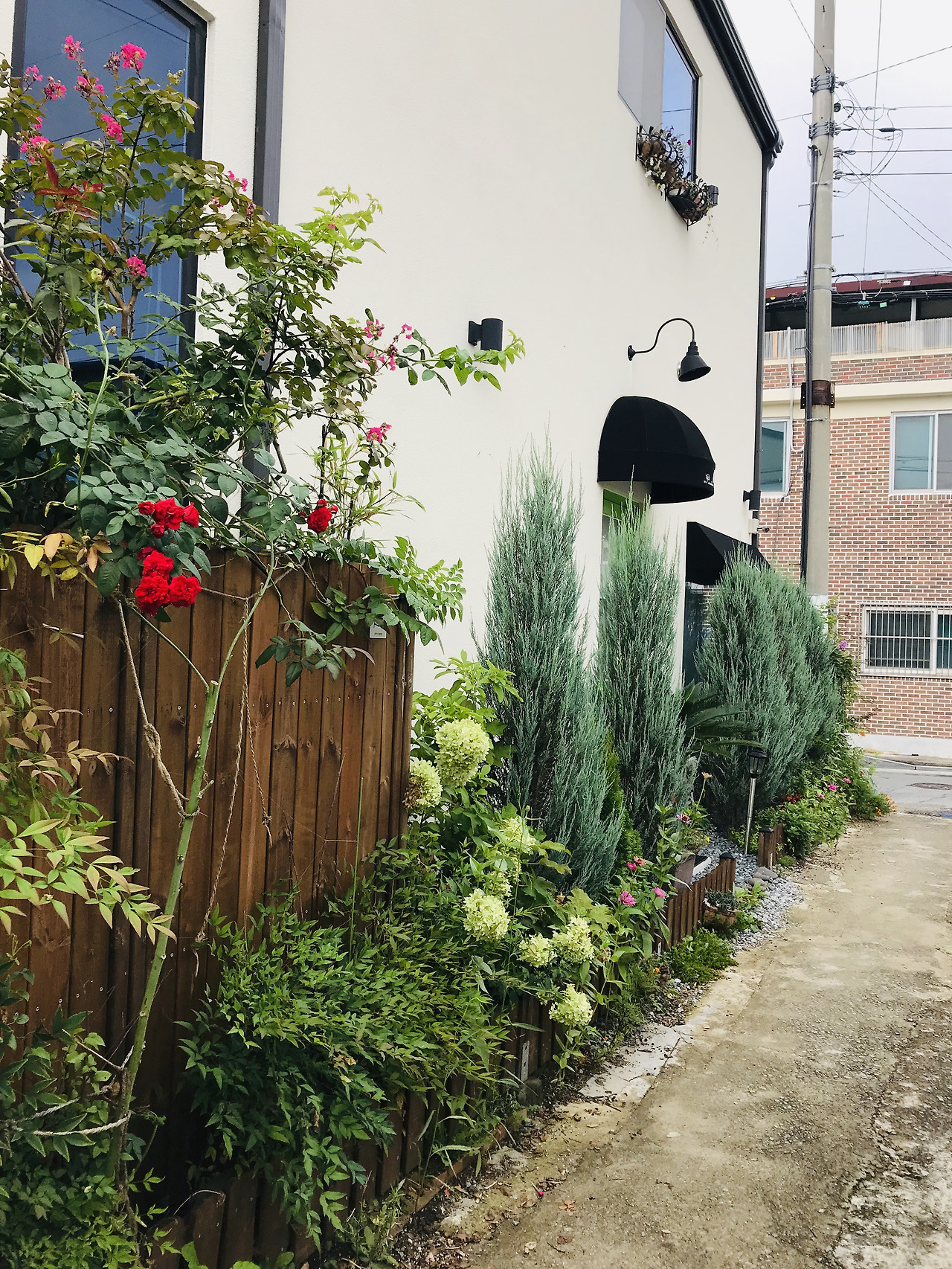 특히 이틀 사이 집 정리 중 지나는 행인들이 곧잘 질문을 했다. 마당이 넓은데 길에서 반쯤 몸을 마당 안쪽으로 기운 자세로 질문을 한다. 어떤 이는 아예 들어와서 사진을 찍는다. 마당에 잔디도 아직 못 깔았고 대문도, 집도 완성되지 않았는데 부끄럽다.