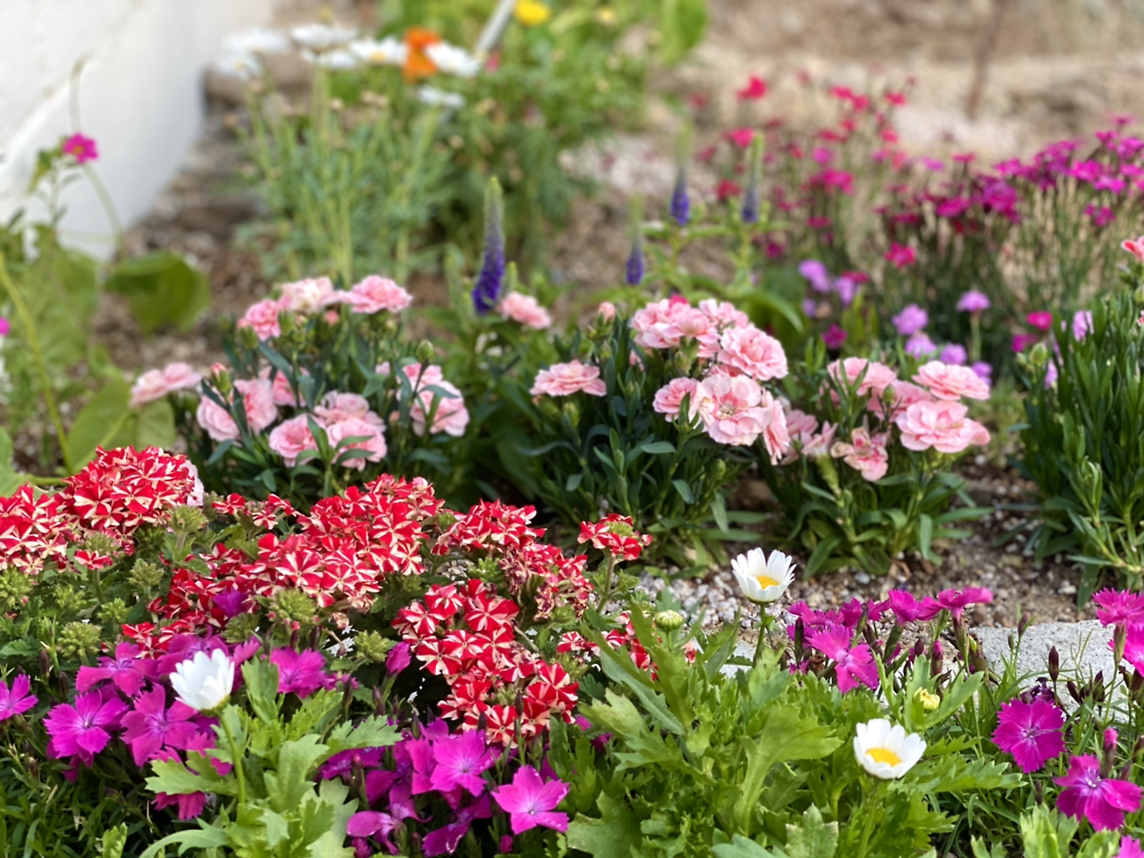 꽃이 예쁘다. 잔디도 예쁘다. 사람들이 아름답다.