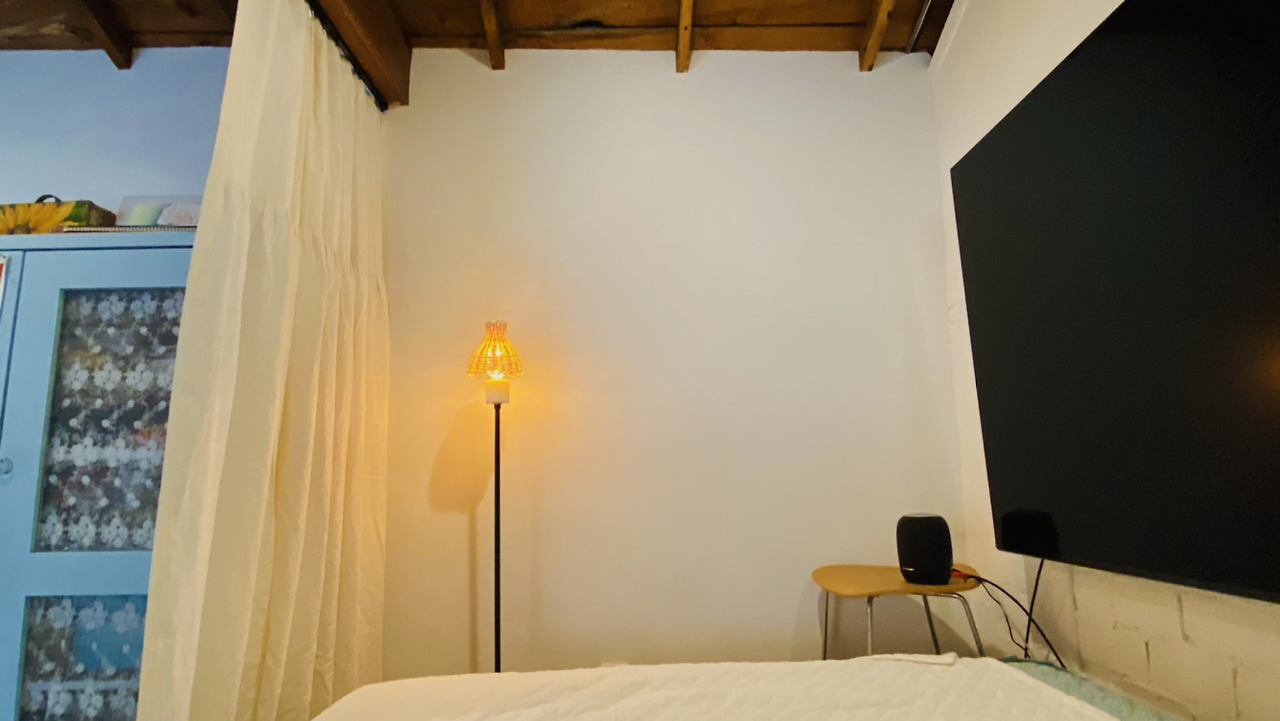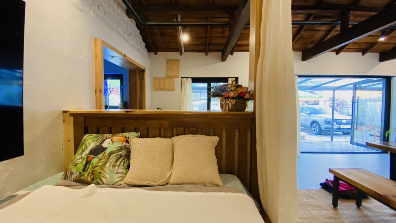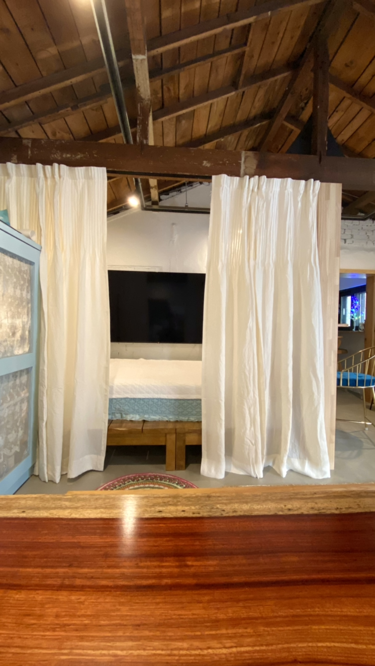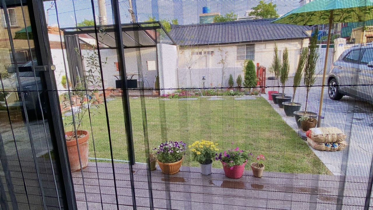 뒤로 보이는 뒷집은 원룸이다. 원룸 일층에 사람이 살지 않는 듯 보인다. 여하튼 뒷집 창문이 보이지 않도록 가로로 시선을 차단하는 커튼을 단다.