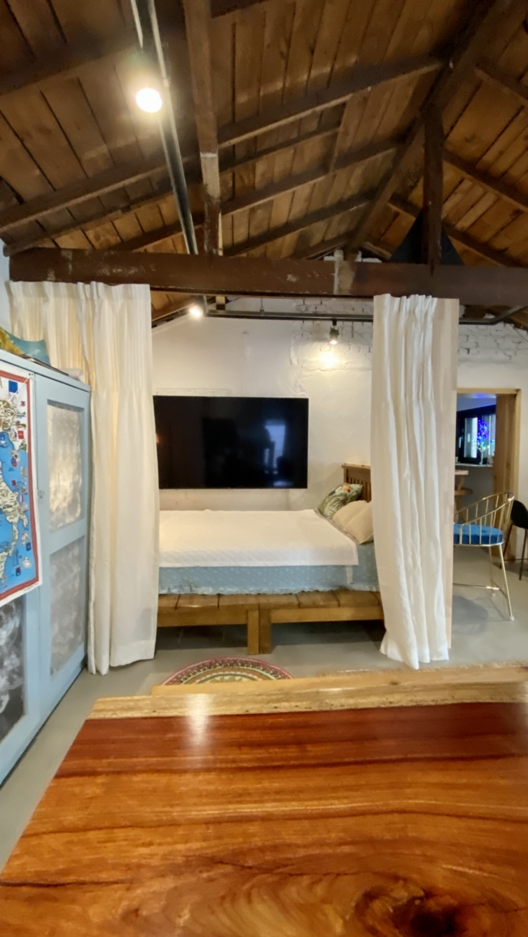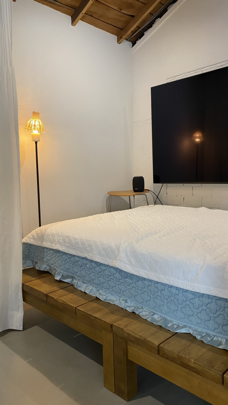 왼편의 하늘색 가구에 대해서도 할 말이 많지만 다음으로 미루기로 한다. 맞춤 제작 후 벤자민 무어 페인트를 사서 내가 직접 칠한 가구다.