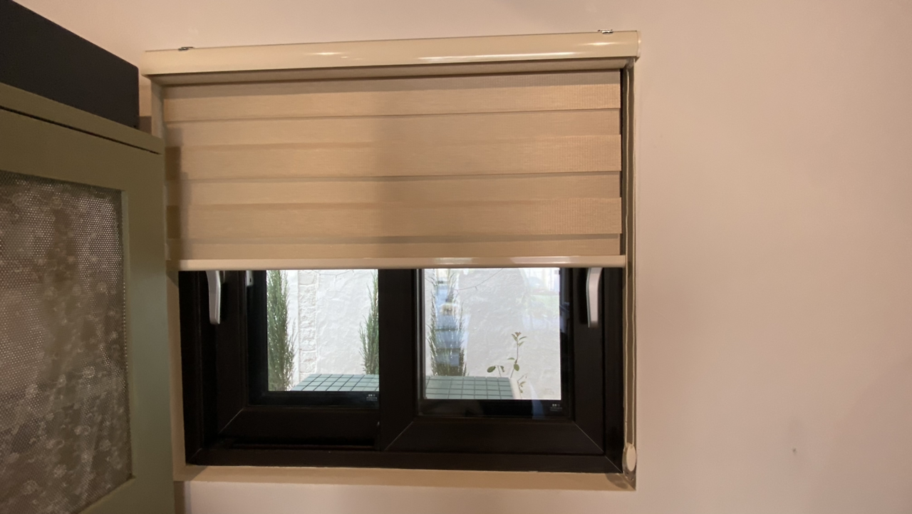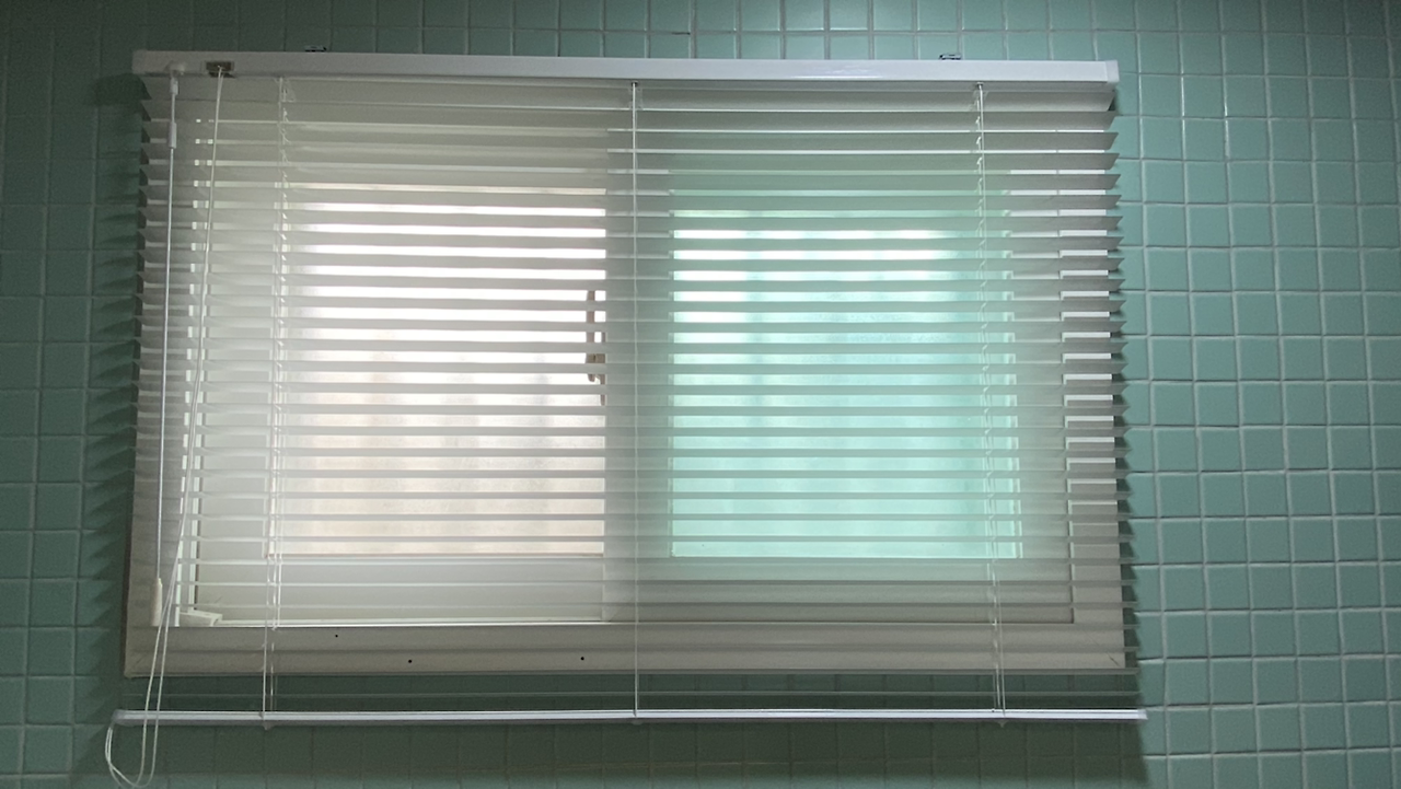 화장실은 베이지 색 알루미늄 블라인드다. 빛을 자유롭게 조절할 수 있는 것으로 한다.