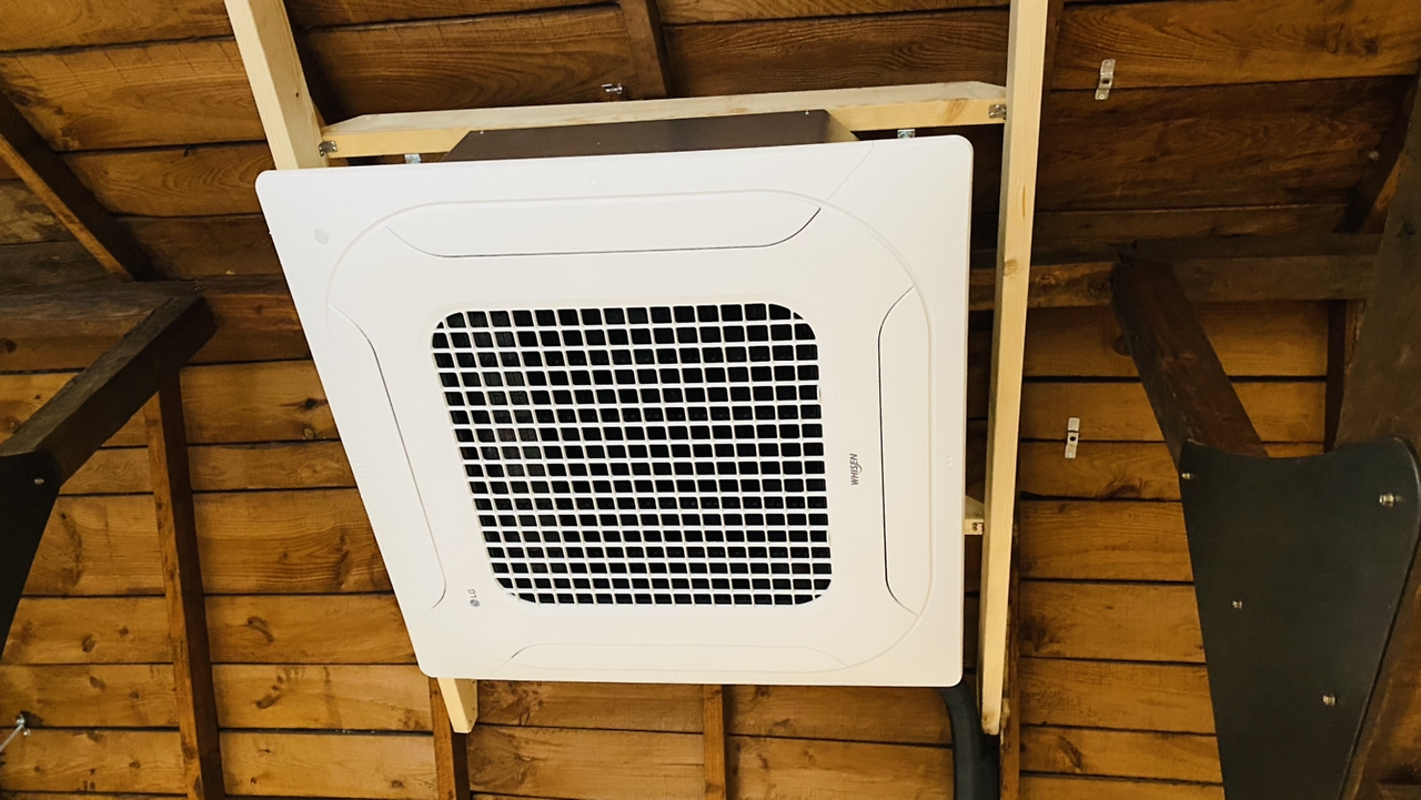 천정의 나무를 보강하여 천정형 에어컨을 달았다.