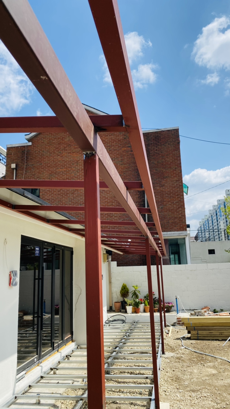 보다 튼튼한 형태를 구상했다. 강화 유리를 한 가장 큰 이유는 채광이다. 특히 겨울철에 채광은 보일러비 절감에도 도움이 되며 안에서 하늘을 보는 재미도 있다.