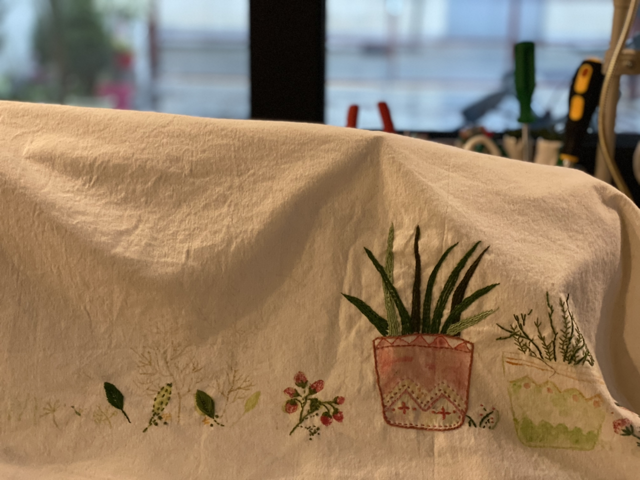 재봉틀의 덮개 천은 자수를 하다 만 상태다. 이런 식이다. 이것을 하다 생각나면 마무리하지 않고 다른 일을 한다. 나의 완벽하지 않은 성격이 그대로 드러난다.