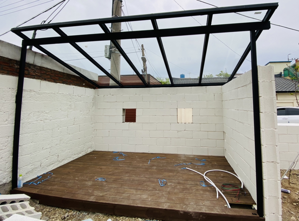 강화유리 처마의 최고 단점은 여름날 뜨겁고 눈이 부셔서 아래에 있을 수가 없다는 점이다.