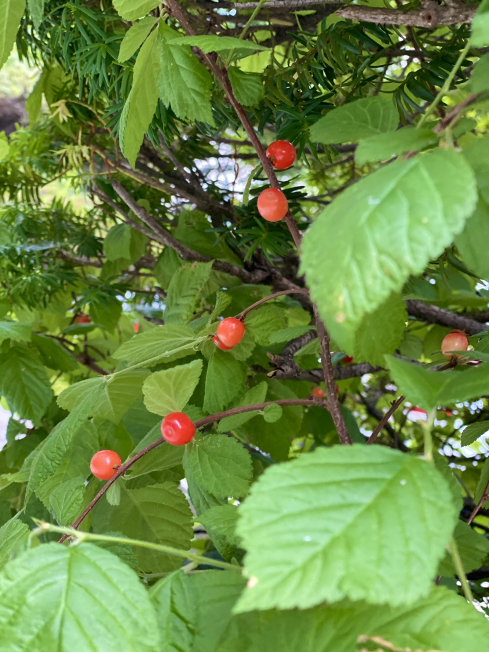 그 후로 완전히 새까맣게 잊고 지냈다. 어제 갑자기 생각이 나서 가만 들여다보니 빨간 열매가 보였다.