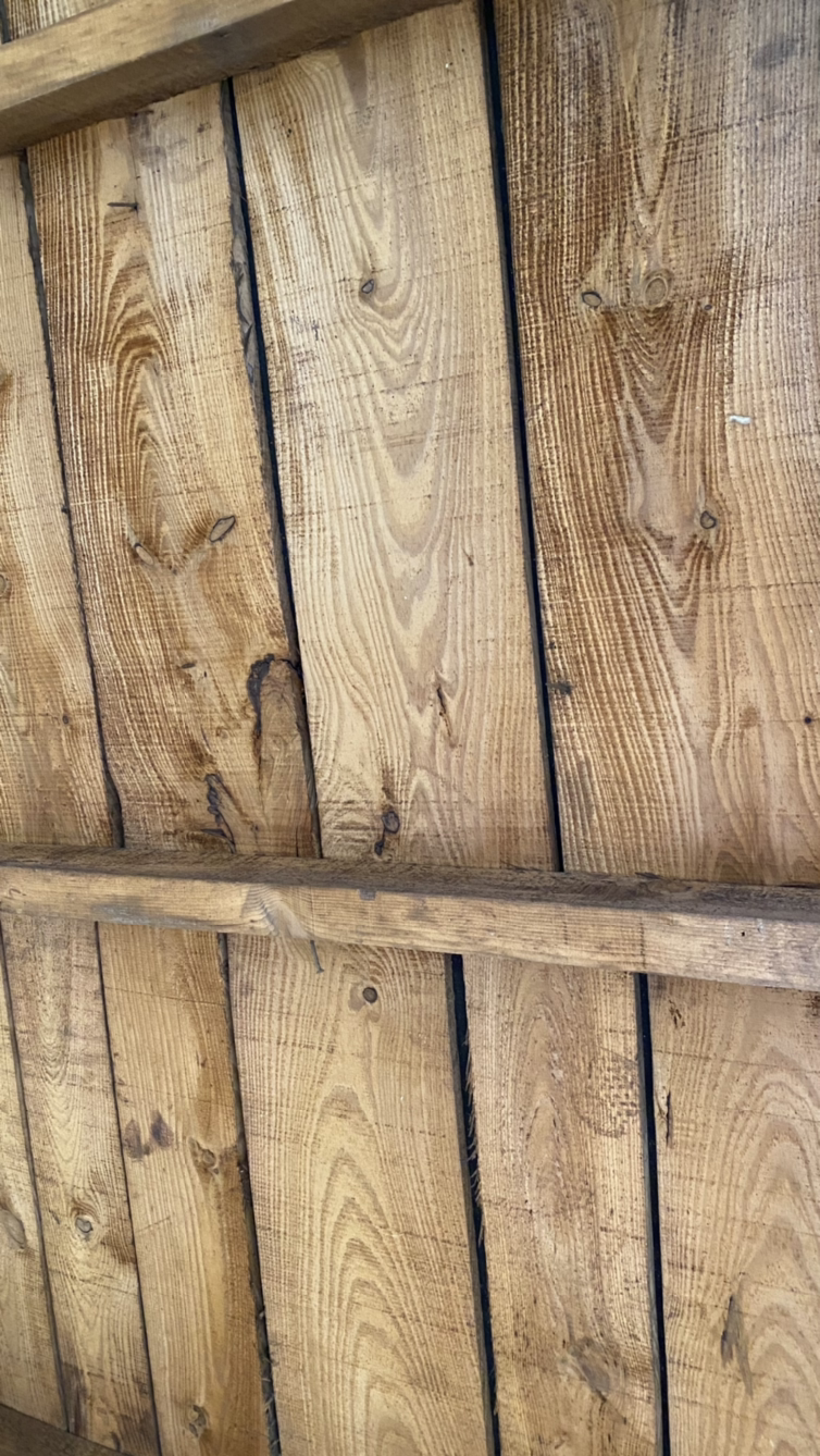 대문 틀도 칠하고 조그만 정원 도구 놓을 창고 틀도 검은색으로 칠했다.(공사가 지연된 후 3주 만에 대문 페인트를 칠하게 된 것이다. 속이 후련했다.) 내부의 천정 마무리를 위해 나무에 스테인을 칠했다.