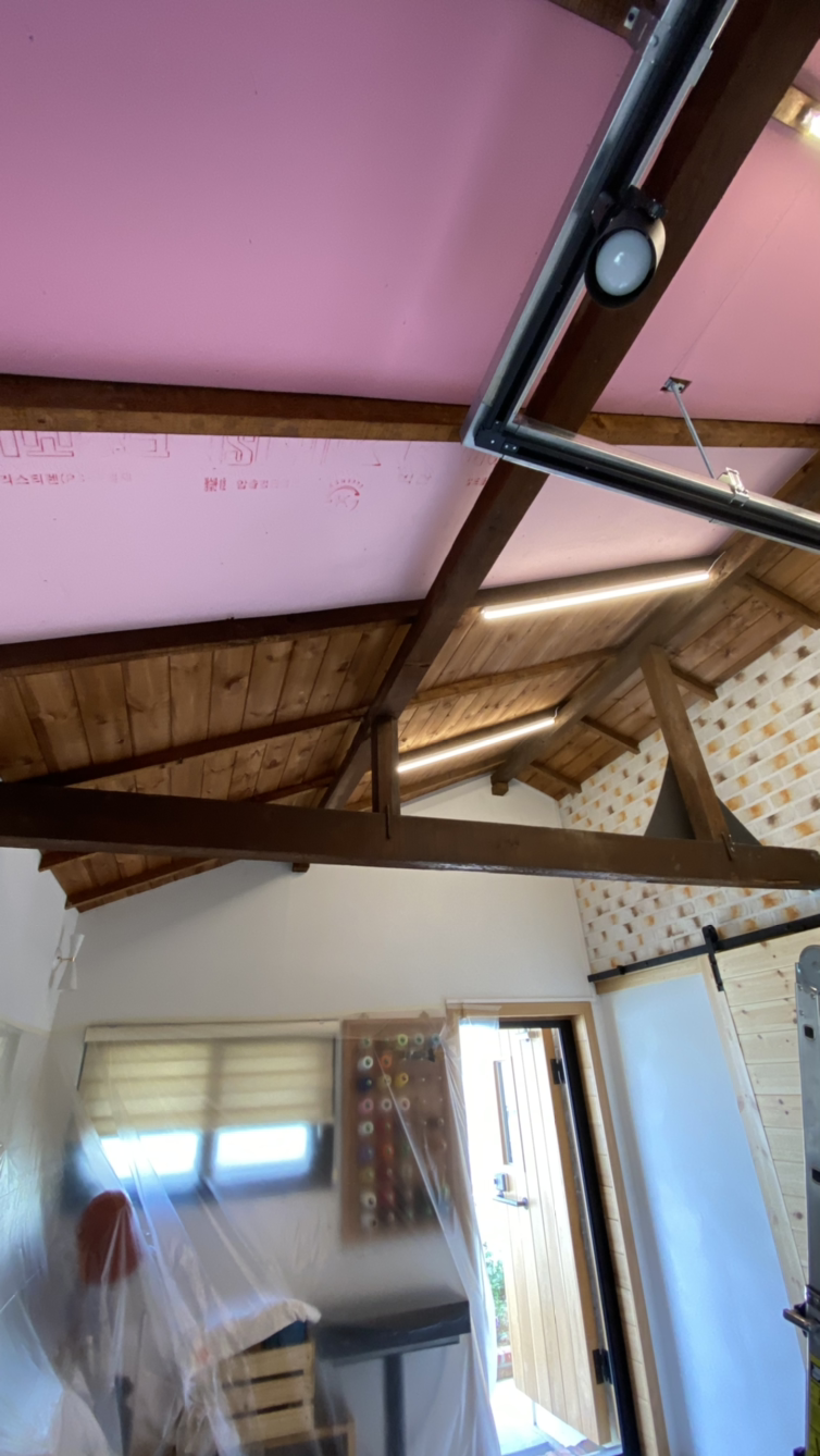 S 대표는 어차피 공사를 할 바에야 단열재를 넣으면 어떻겠는지 물었다. 나는 당연히 해야 한다고 생각했다. 사실 세월을 머금은 천정 나무를 덮자니 아쉬움이 있었다. 그러나 단열과 먼지, 벌레 등의 문제에서 조금 놓여나게 되니 경비 지출이 아깝지 않았다.