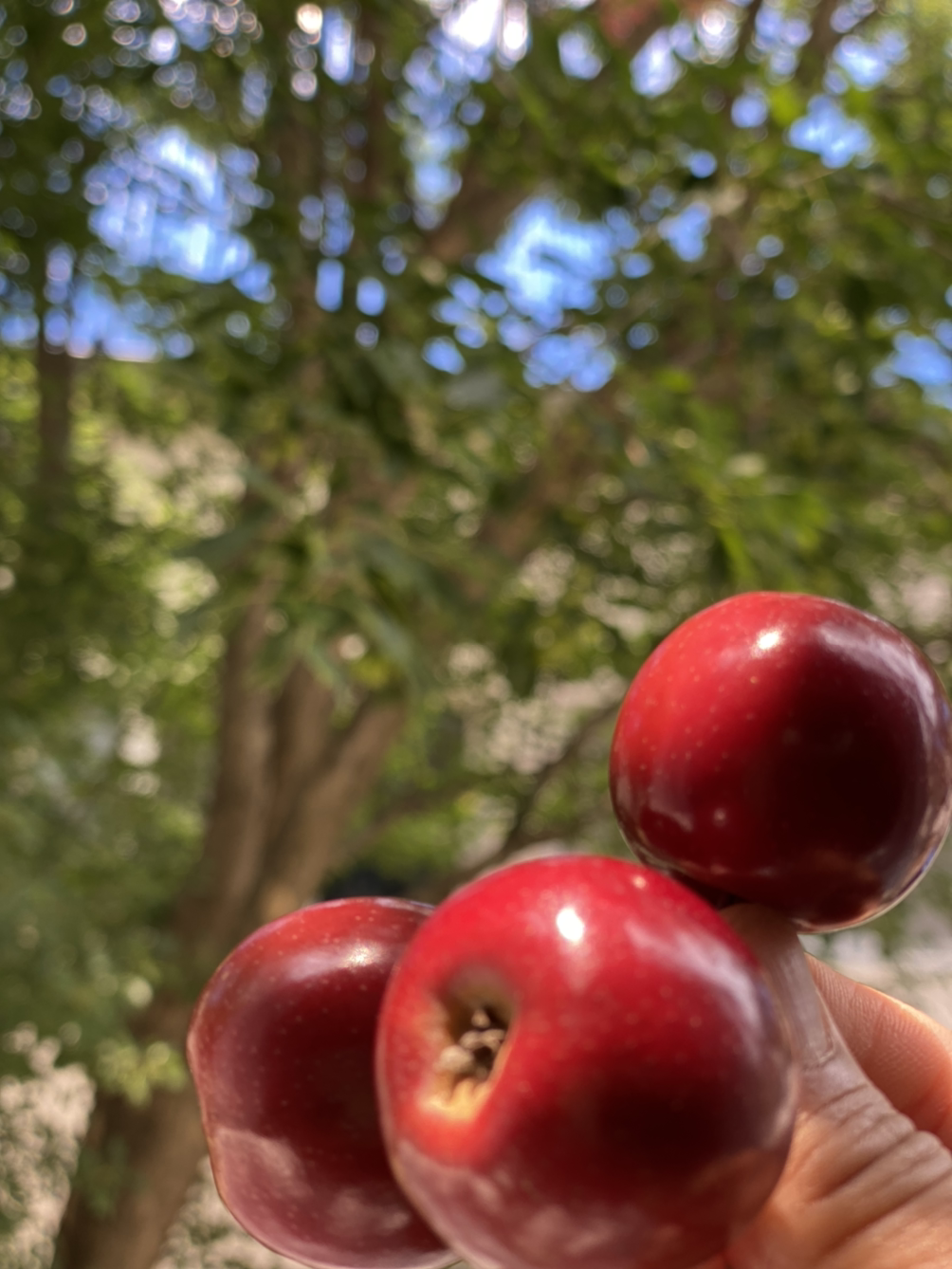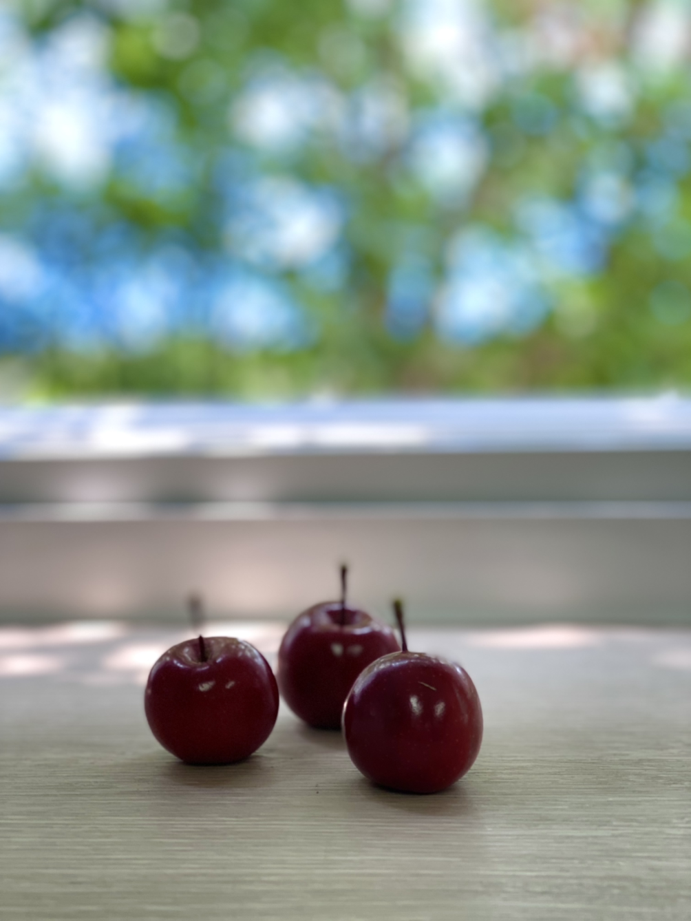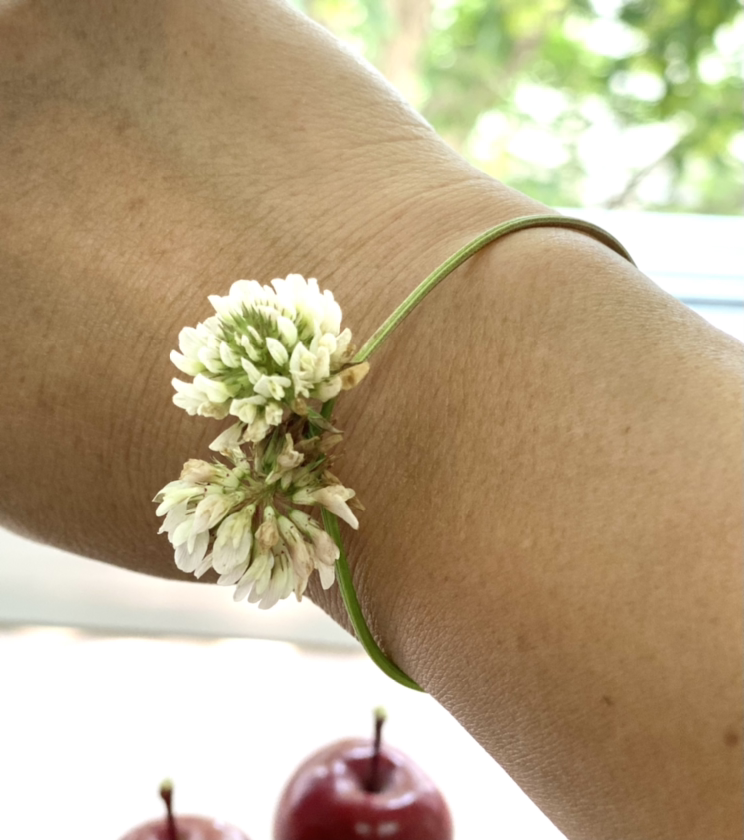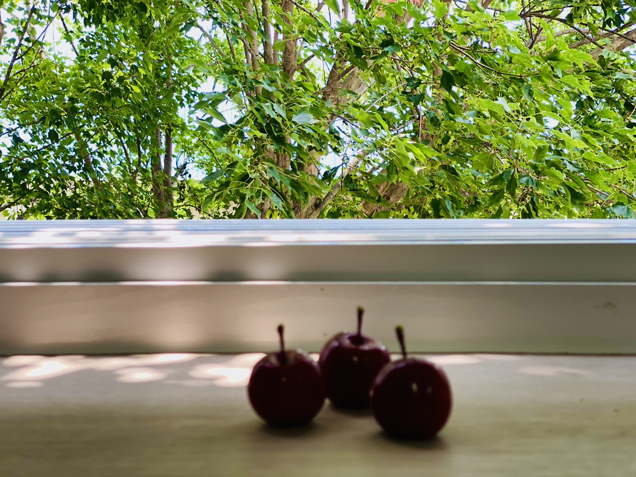 직장 나의 공간의 창문으로 커다란 나무가 있다. 따 온 아기사과를 두고 찍어본다. 동료가 팔에 꽃팔찌를 만들어 줘서 기분 좋게 하고 다니다가 벌레가 나온 것에 기겁한다. 하하. 아주 아주 미세하지만 얼른 풀어서 봉에 묶어둔다. 매일 정원에서 서성이니 팔이 다 시꺼멓게 타 버렸다.