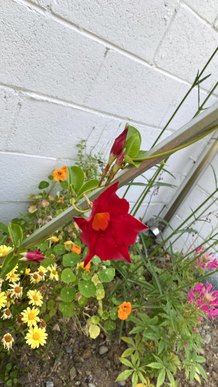 교정의 능소화와 무척 다른 양상이다. 퇴근하니 능소화도 축 늘어져 있어서 지주대를 다시 꽂는다. 태풍을 맞이하기 전에 더욱 튼튼하게 매 놓아야 할 것 같다.