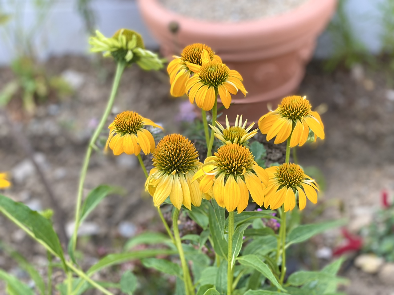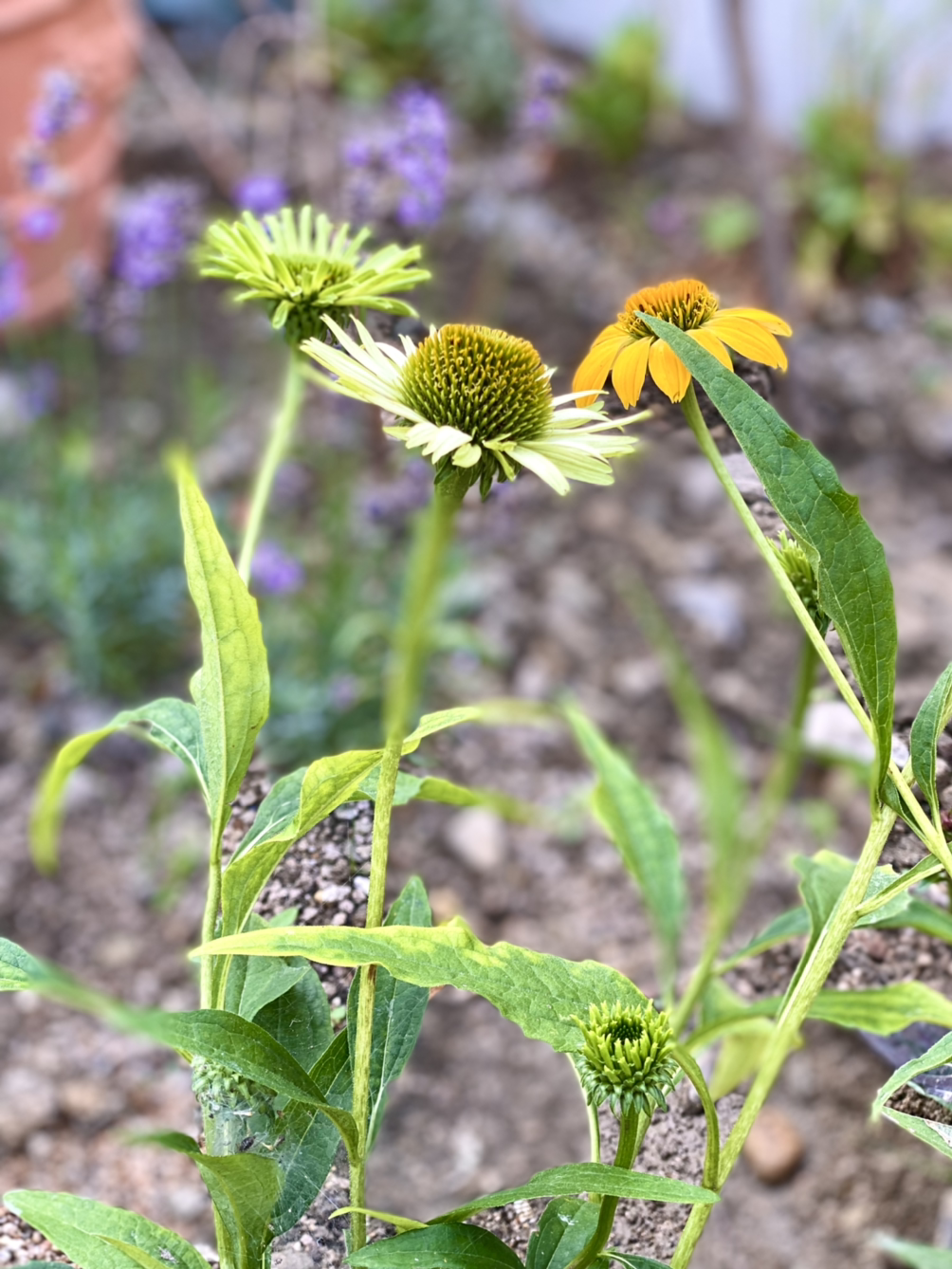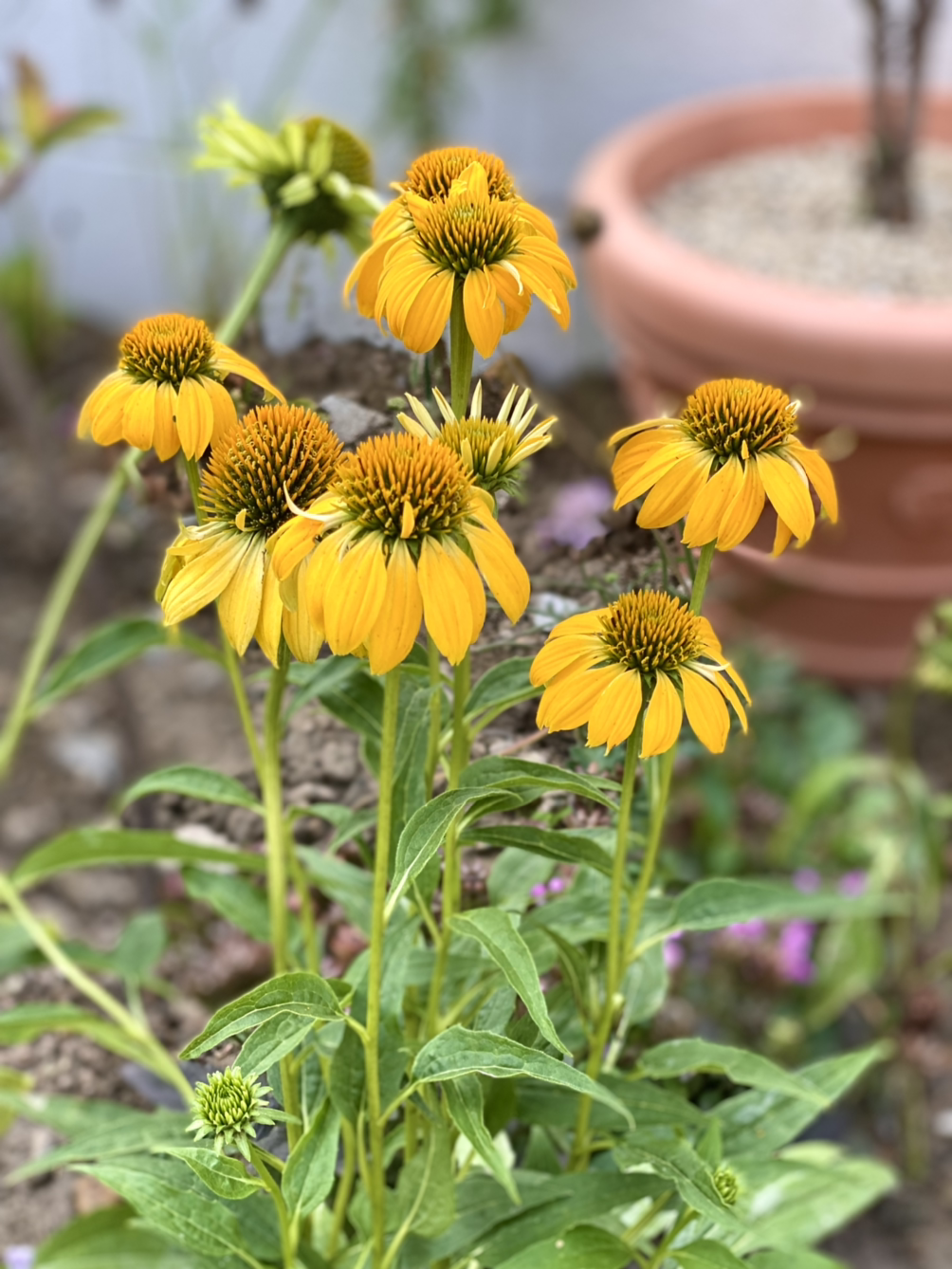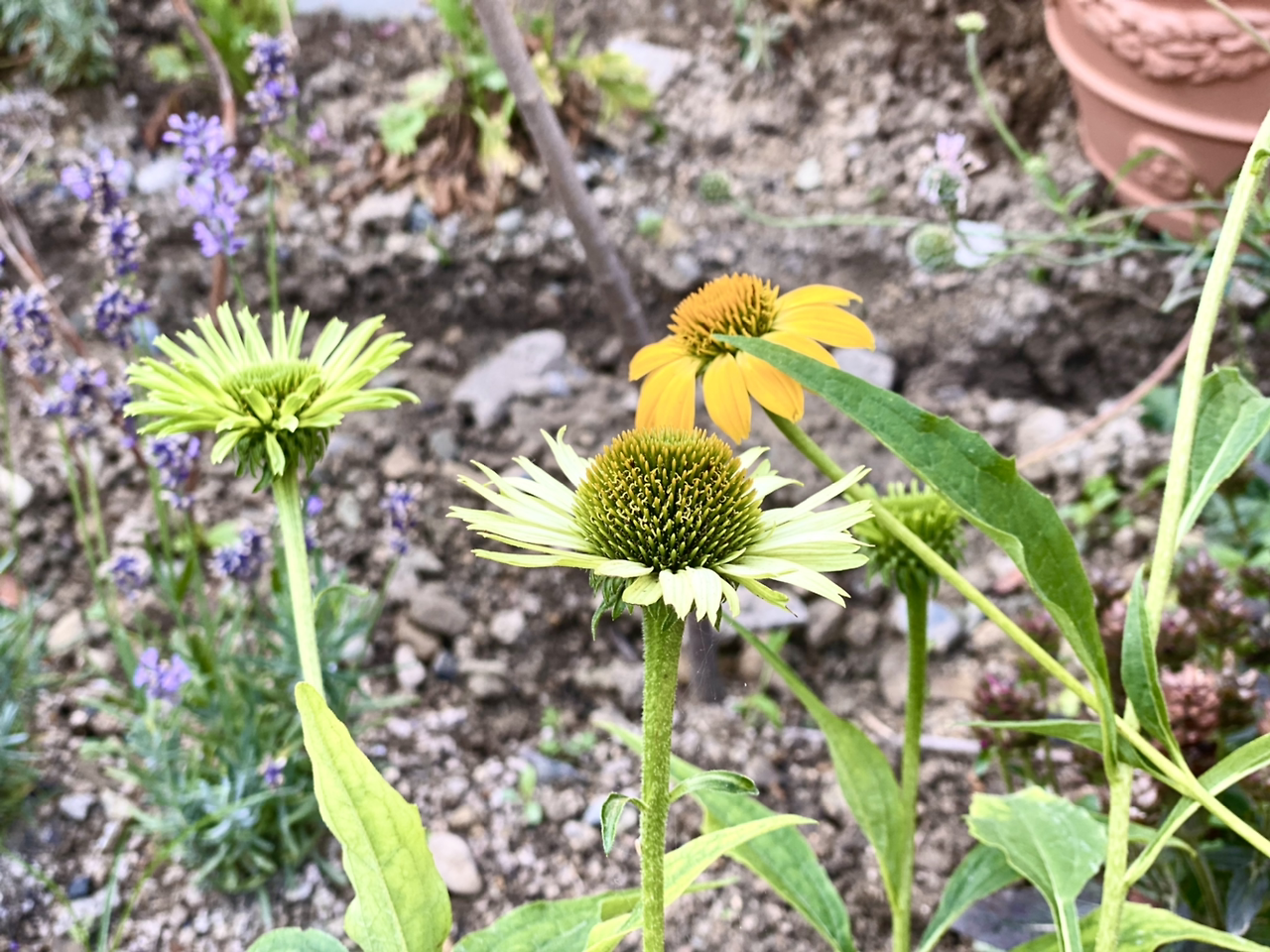 에키네시아(Echinacea)의 꽃말은 영원한 행복이라고 한다. 영원히 죽지 않을 것 같다. 월동한다. 가격은 정말 눈물 나게 비싸다. 노랑꽃은 만원. 연두 꽃은 이만 원. 그래도 영원한 행복을 보장하니 얼마나 대단한가.
