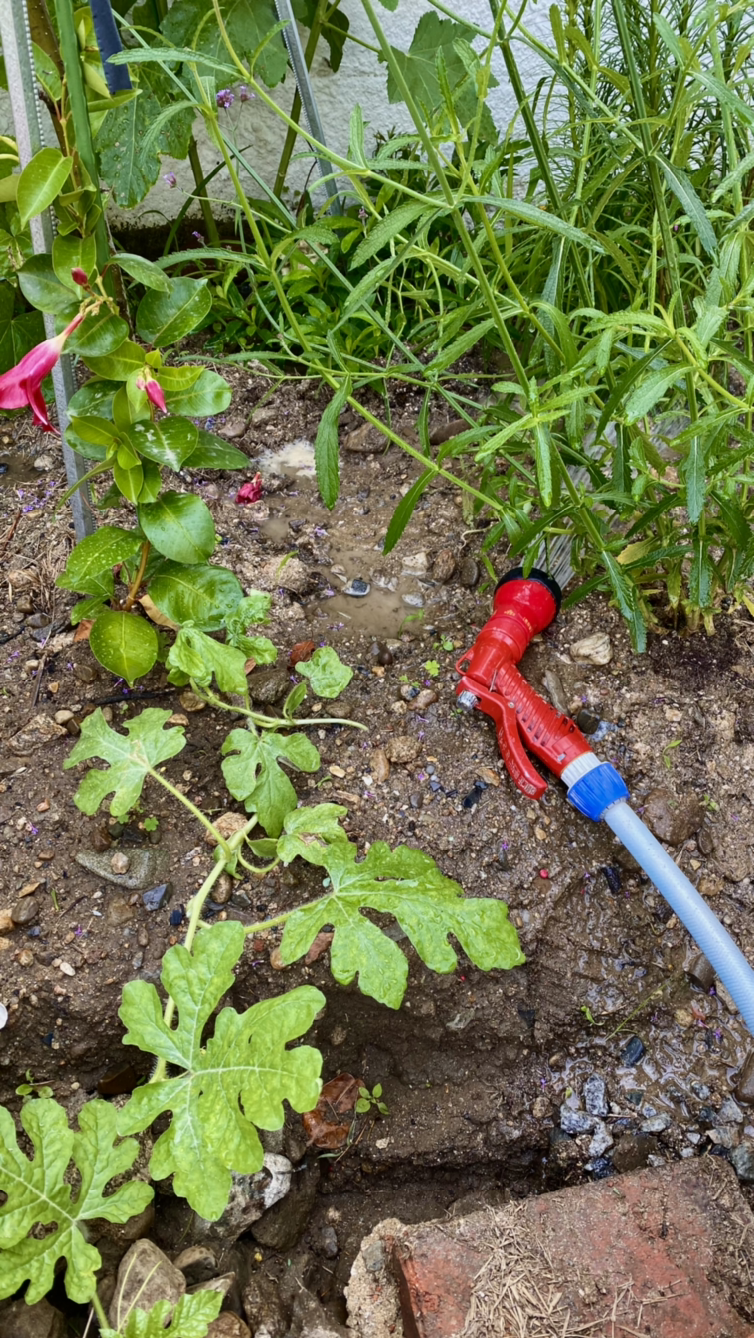 퇴근 시간이 되니 날씨는 언제 그랬냐는 듯이 맑아졌다. 걱정을 조금 하고 공방에 도착하니 아니나 다를까 수건이 여기저기 떨어져서 나뒹굴고 있었다. 잔디도 흩뿌려져 있다. 그나마 조금 건초가 되어 화단 여기저기 뿌려 줬다.