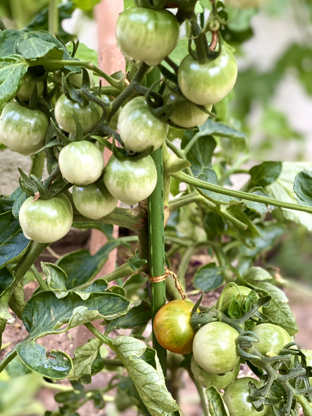 2년 전에 아이들과 학교 꽃밭에 토마토와 부추 등을 재배했다. 그 아이들은 모두 대학에 들어가 이제 풀이 무성하다. 저 쪽 다른 잔디에서 기계음이 들린다. 얼른 찍어야지.