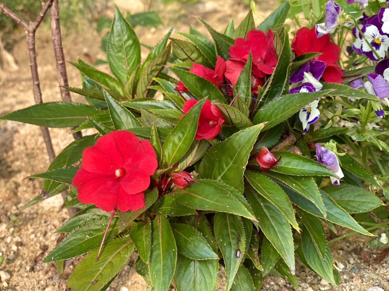 텃밭의 앞 쪽에 고추 네 포기, 토마토 두 포기. 토마토가 너무 자리를 차지해 두 포기는 뽑고 꽃을 심었다.