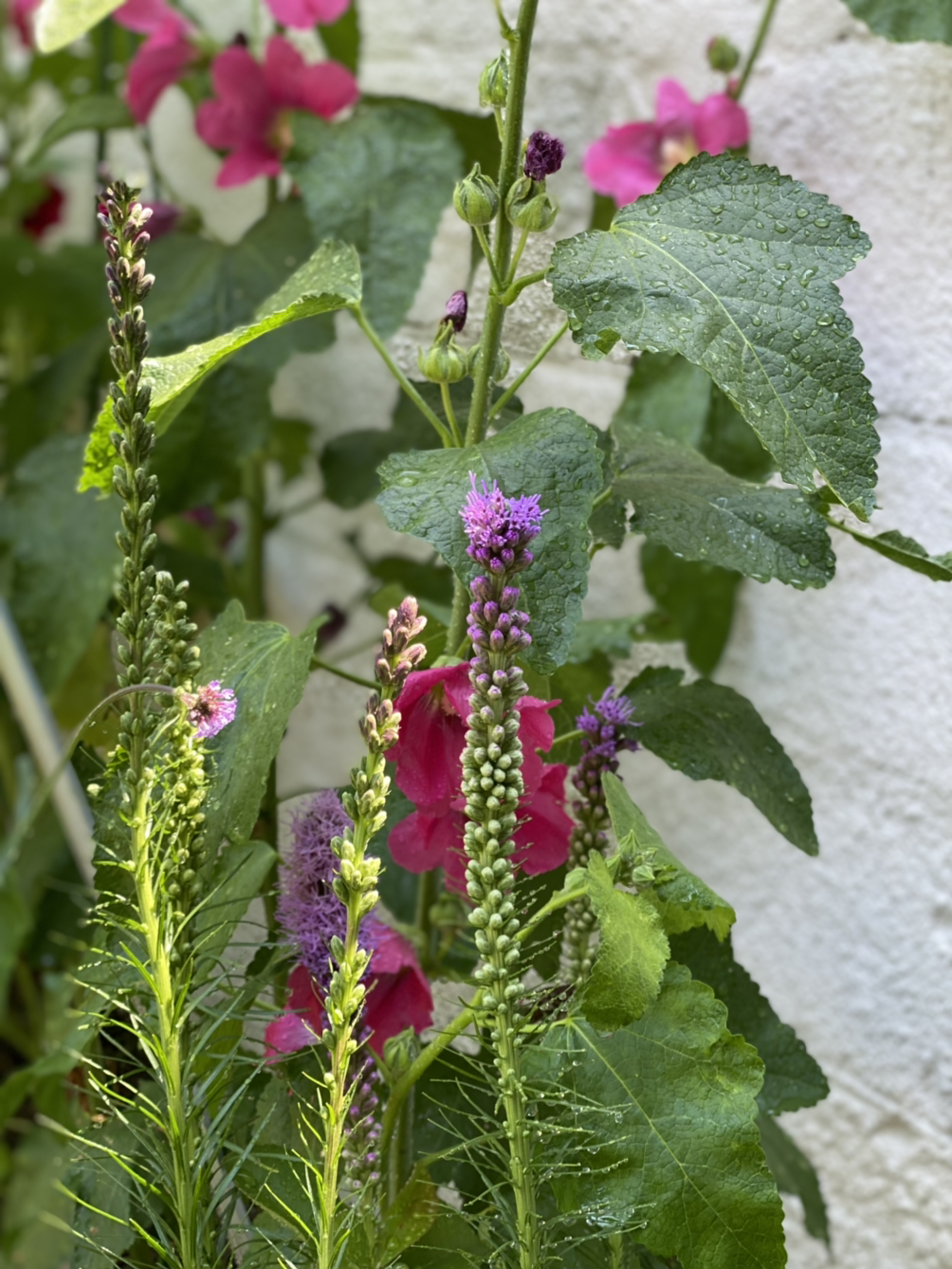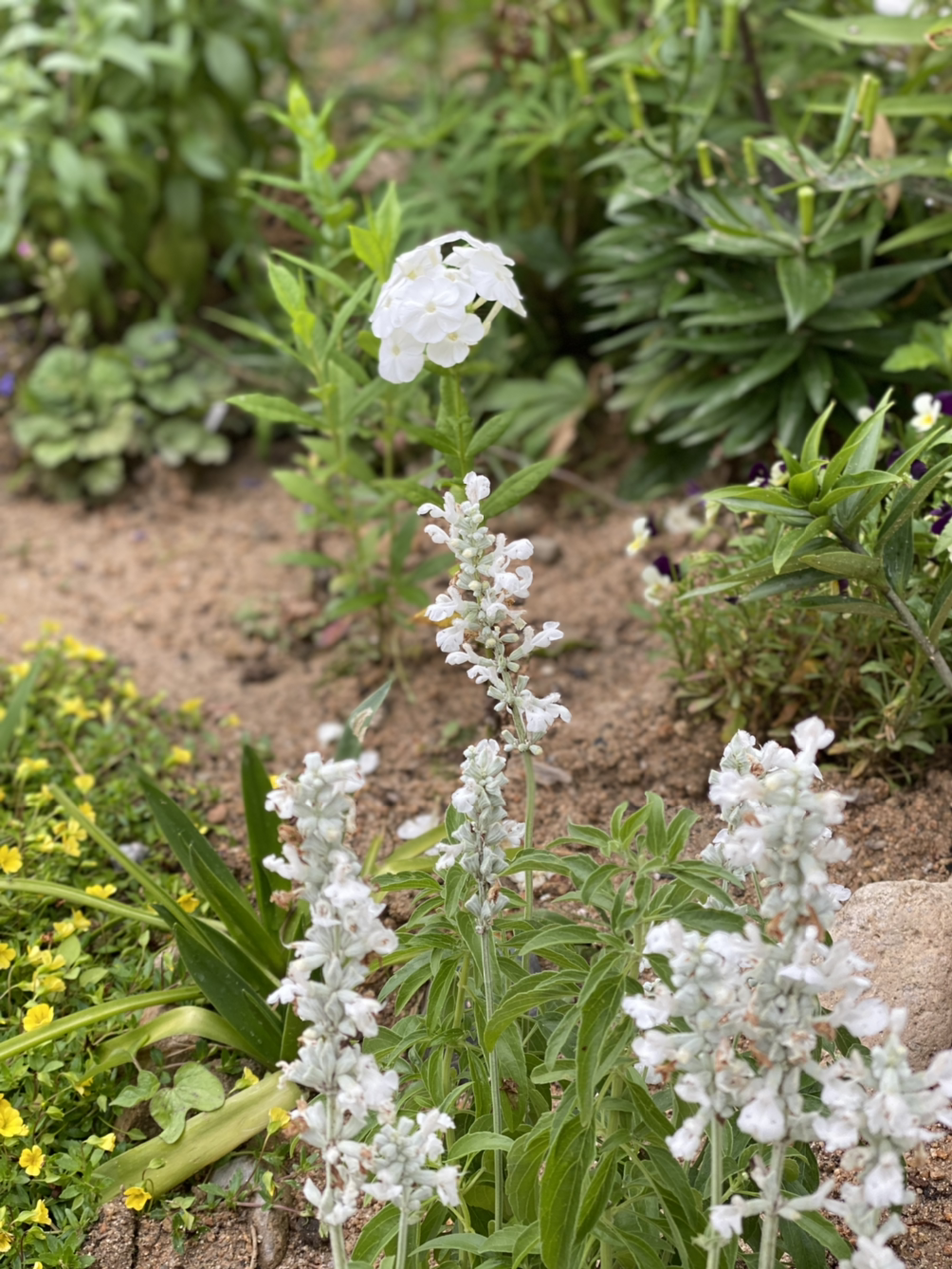 로벨리아 뒤로 꼬리풀, 블루 세이지가 보인다. 아래의 맨 왼쪽은 화이트 세이지다.