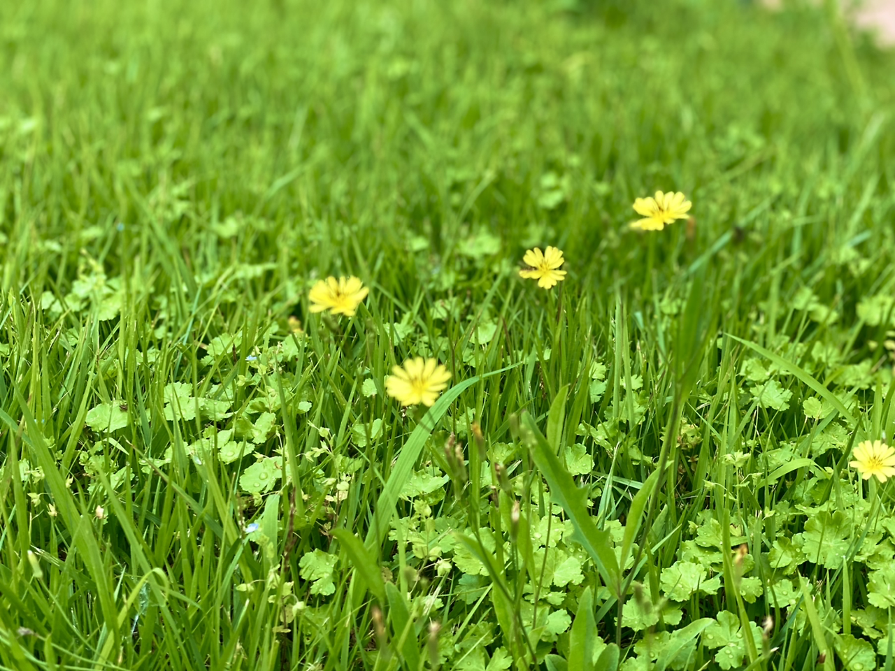 새벽에 공방 <모닝>에 가서 물을 주고 출근했다. 출근하면서 보니, 우리 교정의 잔디는 그야말로 잡풀 대 잔치다. 그래도 잔디밭이 아주 드 넓어서 시원하다. 이제 토끼풀 동산이 되어가는 중이며 씀바귀가 지천이다. 봄에 뜯어 나물 해 먹기 딱 좋다. 잡풀도 예쁘다고 뽐낸다. 나의 잔디밭이라면 뽑혔을 씀바귀들이다.