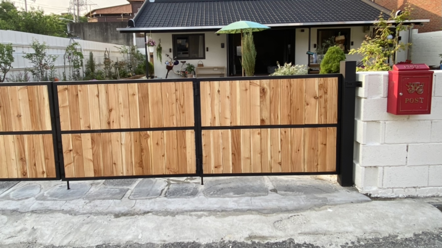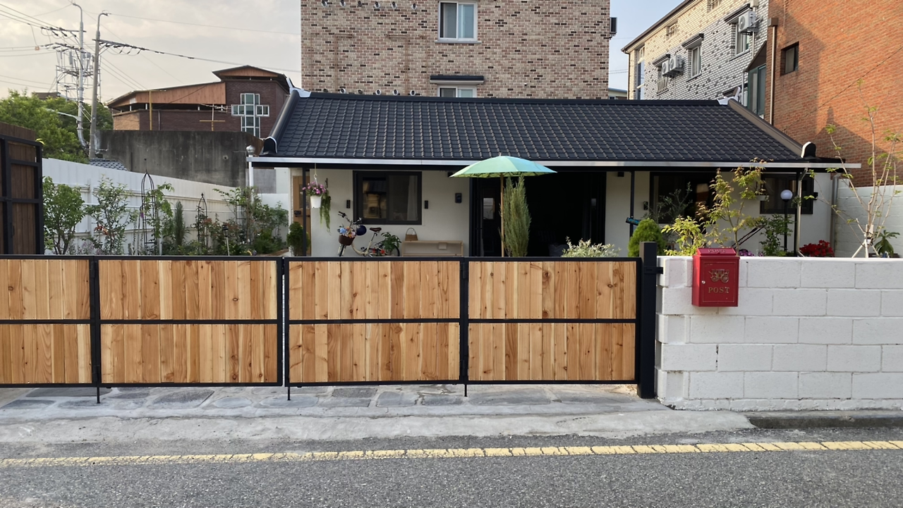 대문의 철재 틀은 S 대표에게 맡겼다. 나무 넣은 부분은 산 장쥔 님(남편)이 했다. 산 장쥔 님의 꼼꼼한 성격이 그대로 반영된다.