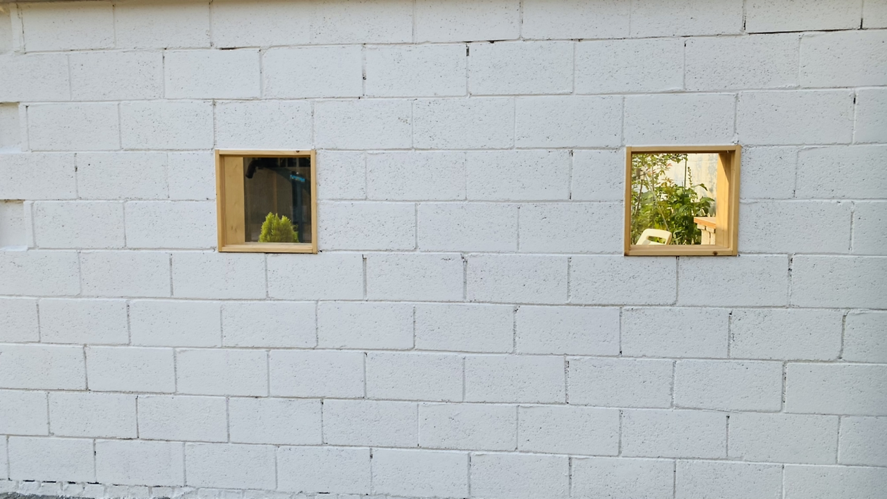 담장의 일부인 썬룸에 드디어 유리창을 달았다.