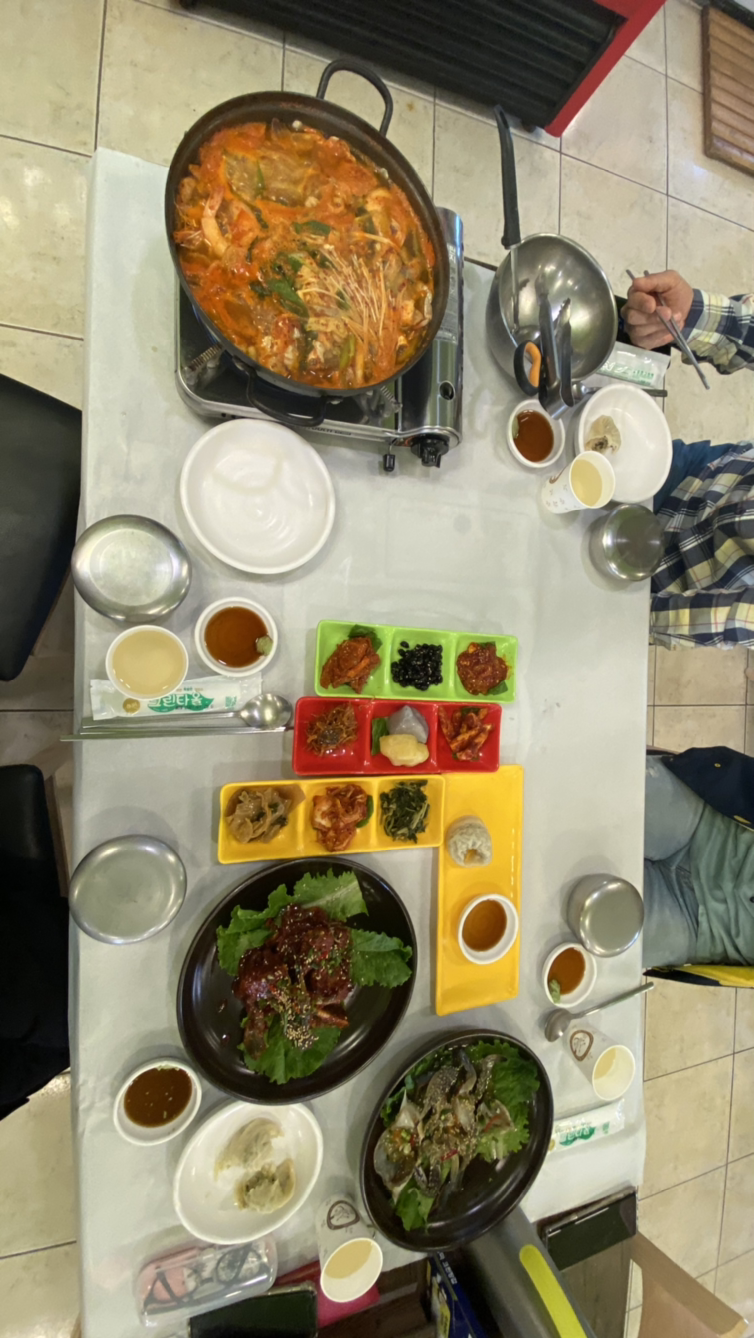 가는 길에 맛집에 들러 우선 점심부터 먹기로 합니다. 해물탕을 주문하니 푸짐한 상이 차려졌어요. 새삼 입맛을 다시게 됩니다. 저는 간장 게장을 더 좋아하는데 이곳의 양념 게장도 맛있었습니다.