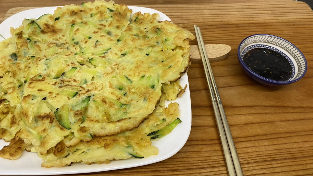 우리 집 식탁이 지금 딱 벽을 바라보게 놓여서 둘이 먹으면 옆으로 앉아 벽보고 먹는 식이다. 먼저 출근하는 남편이 호박전을 부쳐놓고 갔다. 머리를 감고 앉아 아침부터 호박전을 맛있게 먹는다. 남편이 요리를 나보다 잘해서 호박전을 부치면 얇고 맛있게 잘한다.