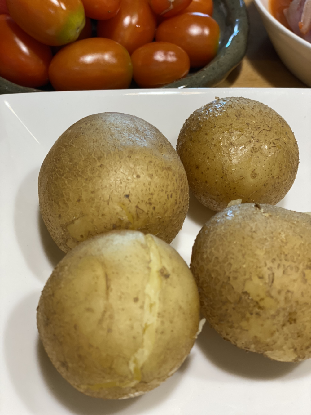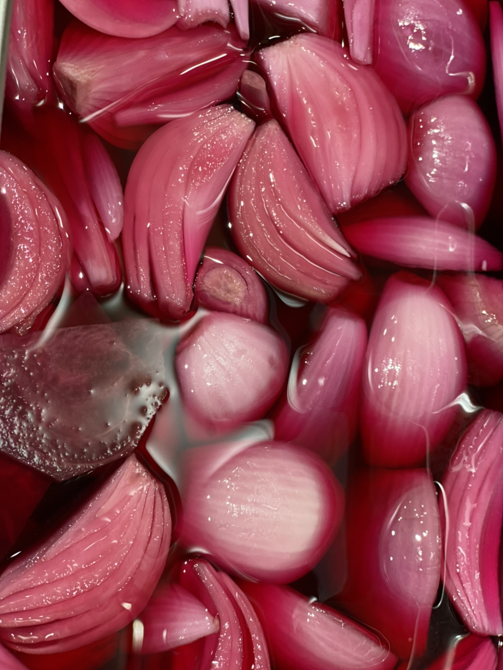 비트에 적신 자색 양파 장아찌, 찐 하지감자는 모두 이번에 수확한 작물이다.