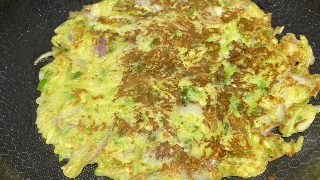 채도 잘 썰어서 얇고 맛있는 전이 완성되었다.