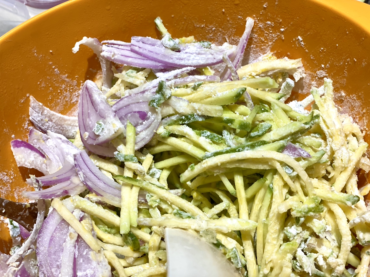매운 고추 넣어 호박전 부쳐줄게. 둘이 함께 놀러 와~.