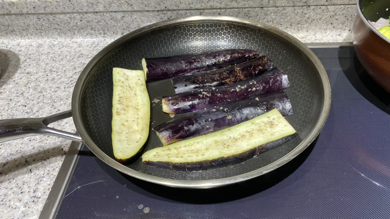 가지를 주로 나물로 해 먹었는데 이렇게 길게 썰어서 볶은 후 소스를 뿌리거나 소금간만 해도 맛있다. 바로 텃밭에서 따서 하니까 정말 싱싱하다.